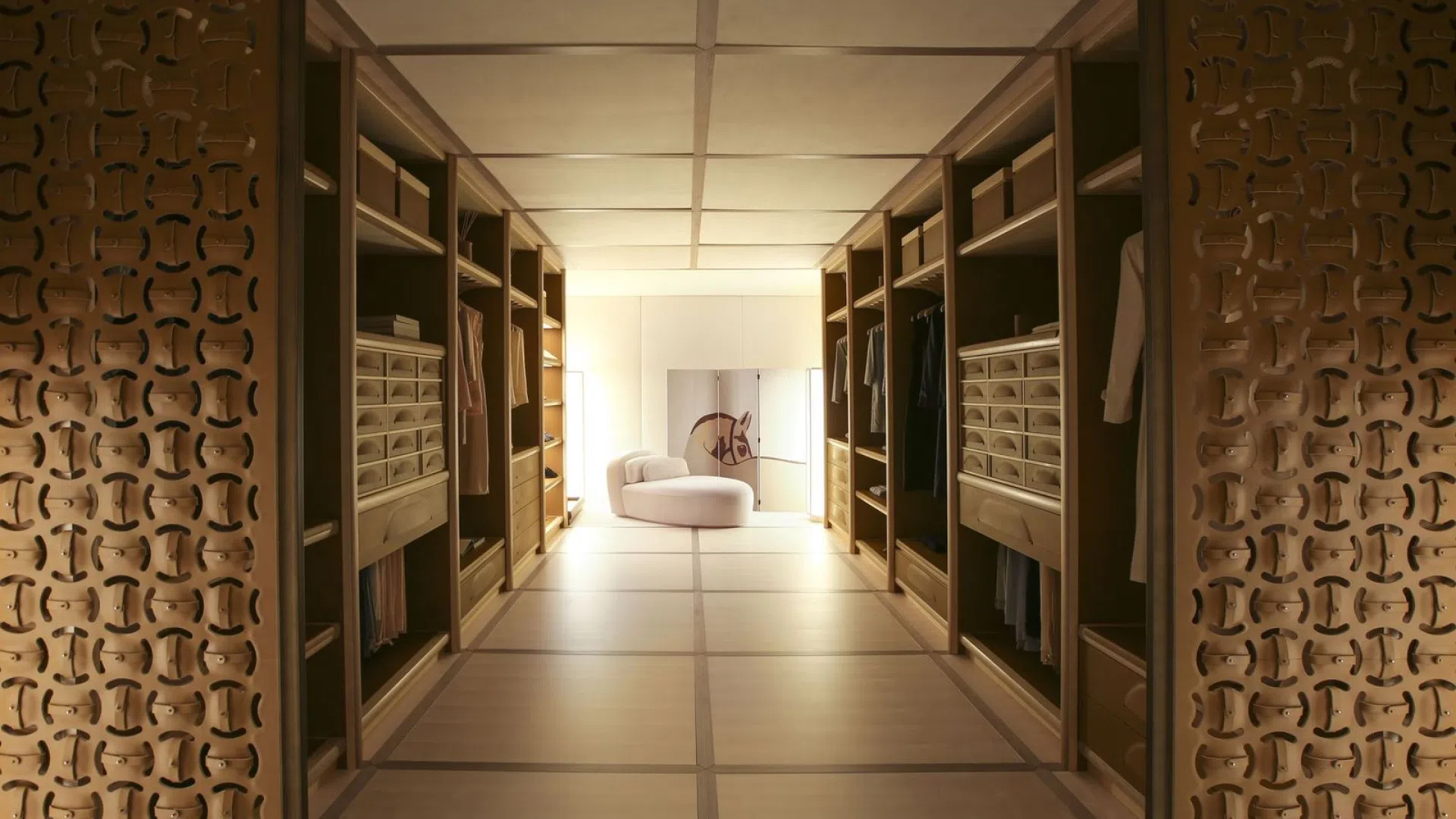 The bedroom embodies serenity. Thoughtfully designed wardrobes, equipped with innovative zoning systems, marry elegance with intelligent function — turning the act of dressing into a ritual of well-being.
