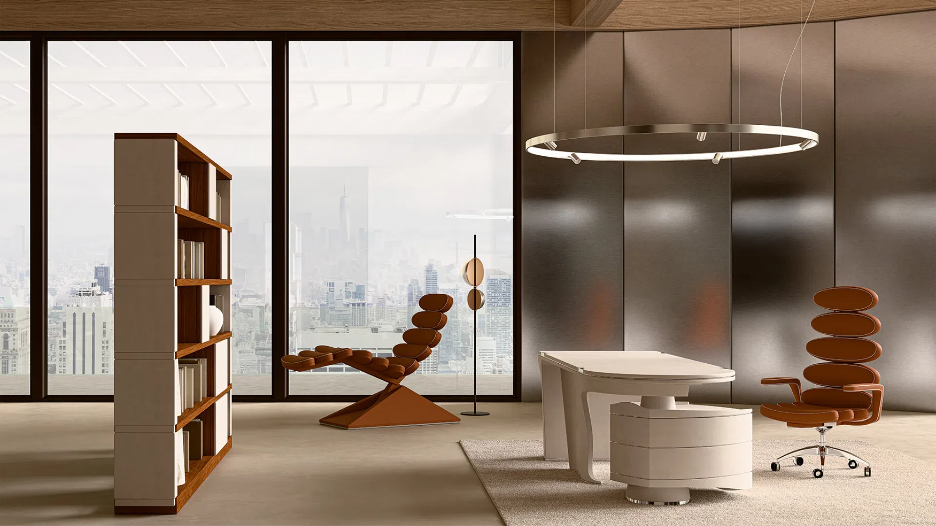 Mascheroni also takes its unmistakable language into the office, where comfort is as fundamental as prestige and functionality. Upholstered seating and refinement of the furnishings create an environment that is graceful and conducive to concentration, perfect for contemporary work environments where the importance of design is on par with performance.