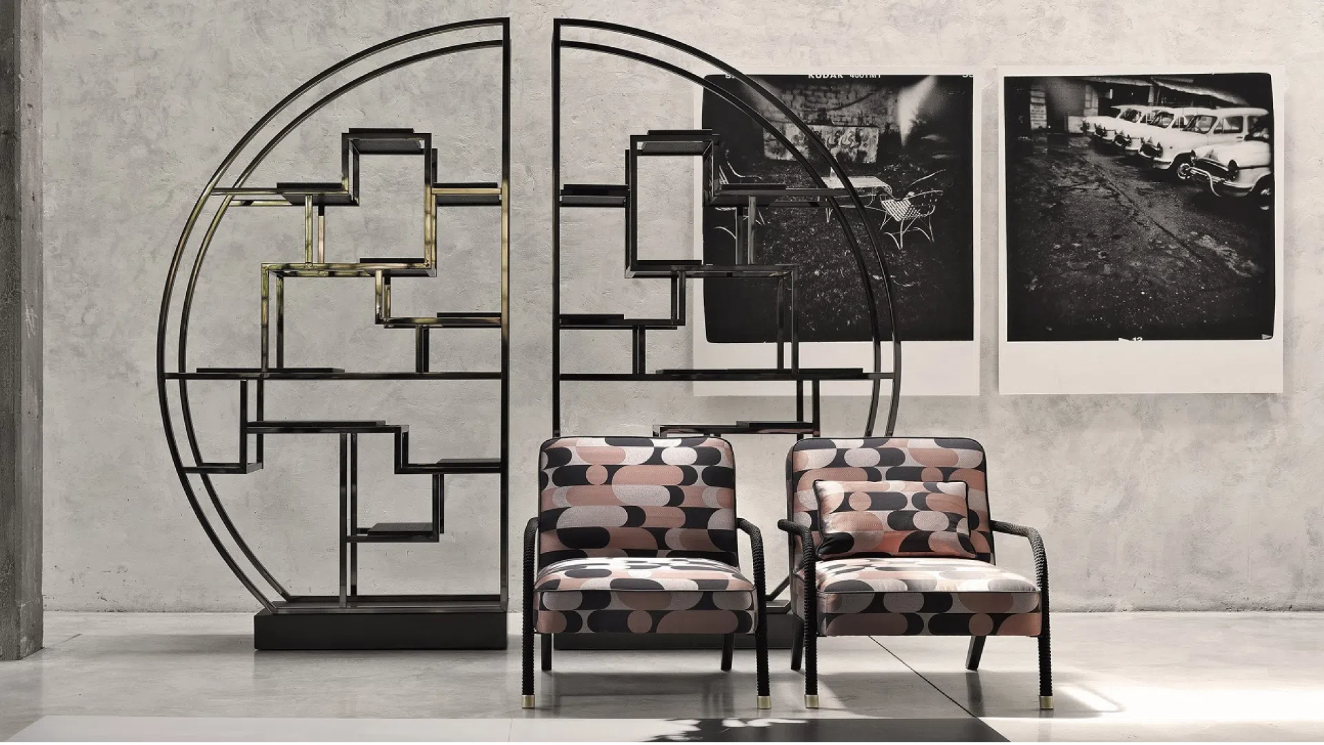 Anchoring the collection is a series of iconic upholstered pieces that immediately set the atmosphere of a room. The Chelsea sofa, instantly recognizable in its classic Scottish houndstooth pattern, is a perfect example of Ferré's ability to reinterpret tradition with modern elegance. Its tailored silhouette and impeccable upholstery give it a couture-like presence, making it a natural centerpiece for both contemporary and classic interiors.