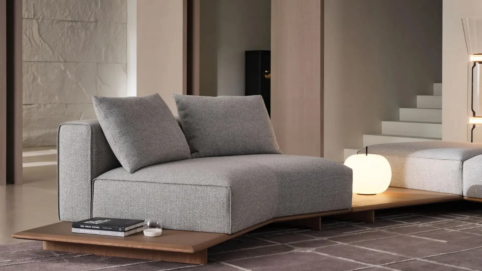 HC28 is modular and versatile, as evidenced by seating systems such as the Salver sofa and Plaid sofa, which allow rooms to be configured for a range of settings, from intimate family gatherings to the most boisterous entertainment. Such modular settings are exemplary of how a seating arrangement can move with changing needs without having to sacrifice aesthetic coherence.