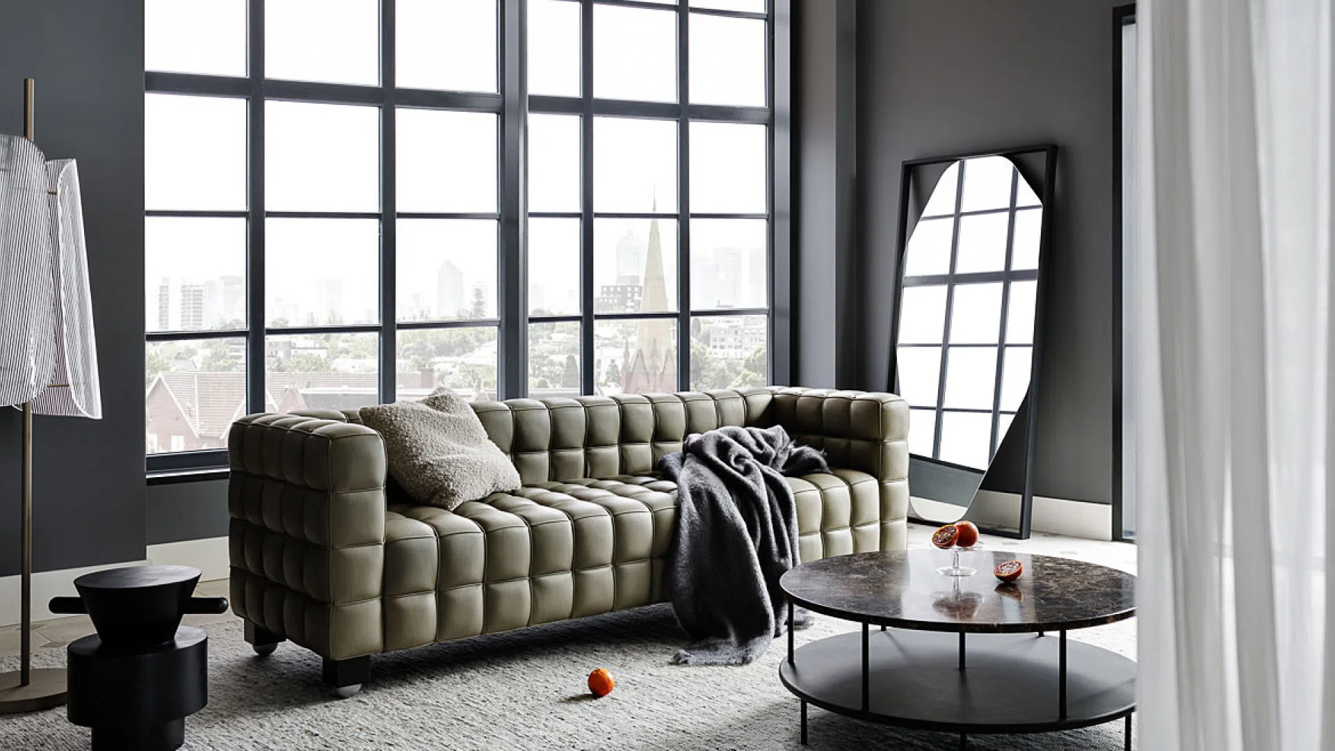 Rooted in historical design yet unmistakably modern, the Salon sofa captures the elegant poise of Viennese salon culture. Its generous upholstered curves and refined piping express subdued architectural grace — a piece that elevates both classic and contemporary interiors.