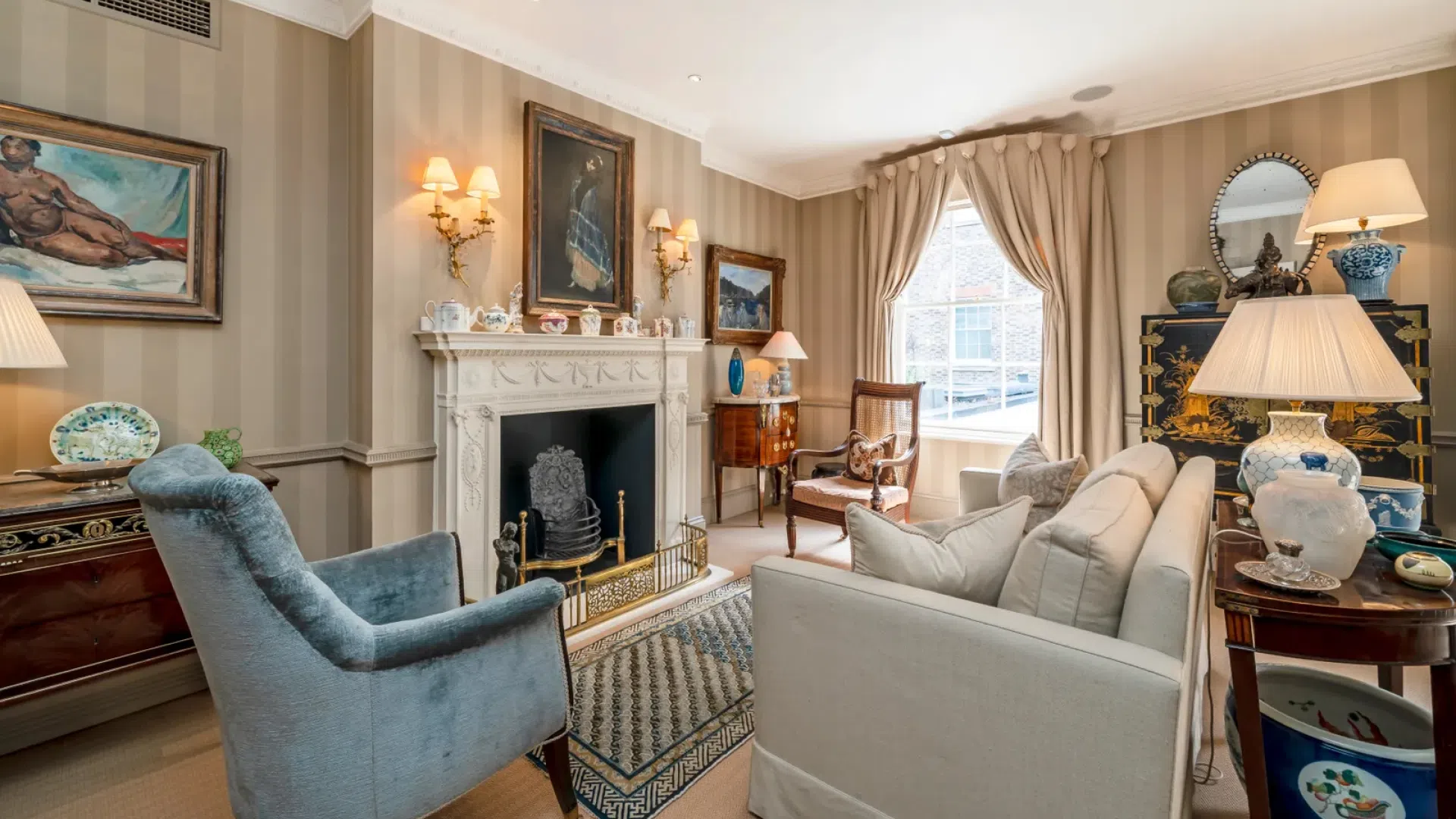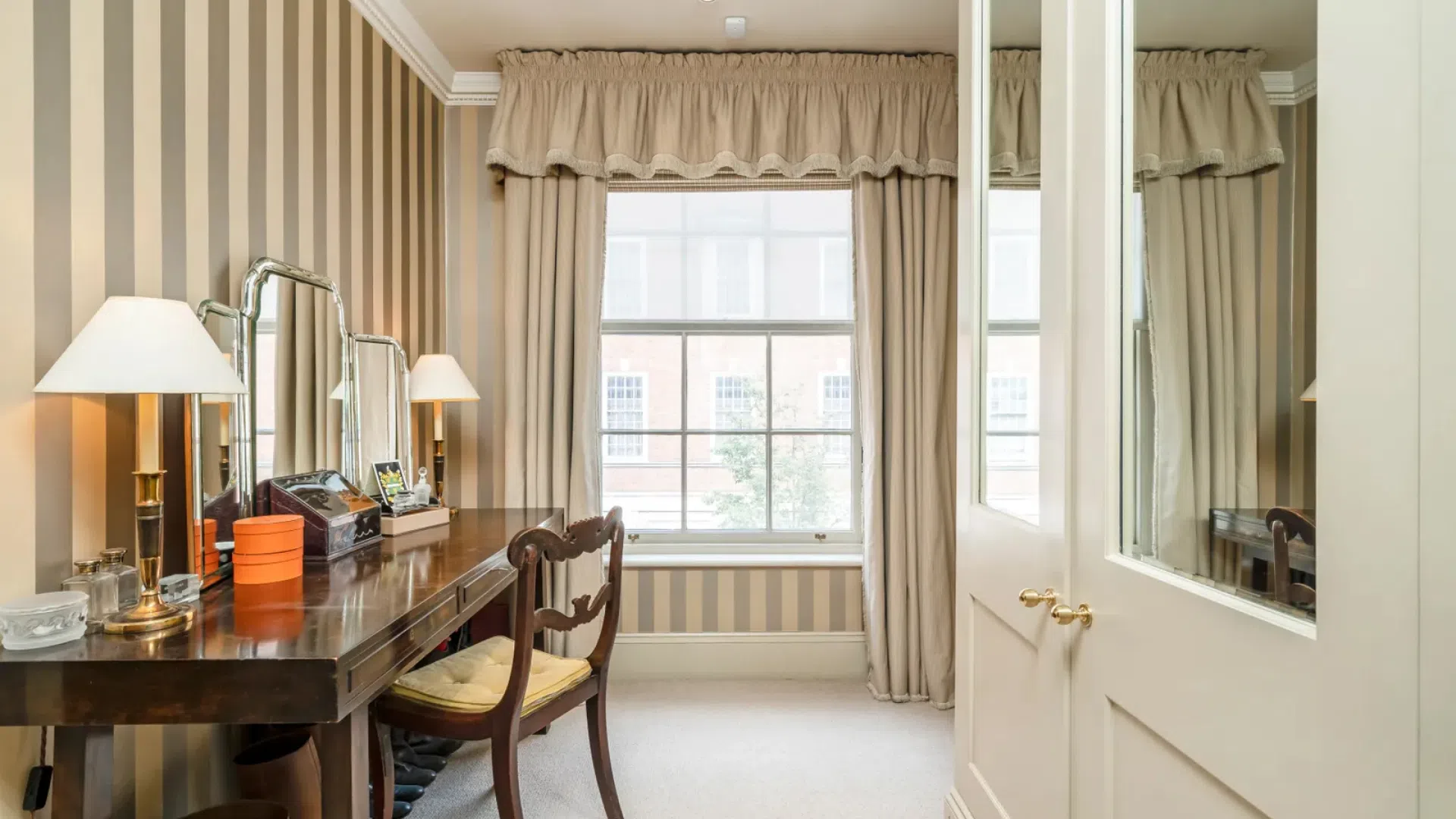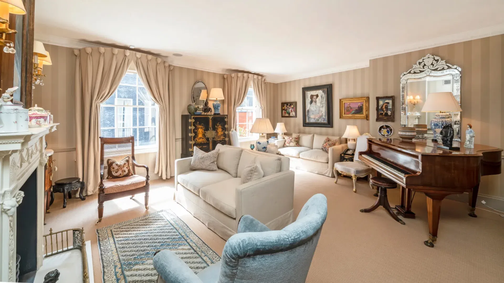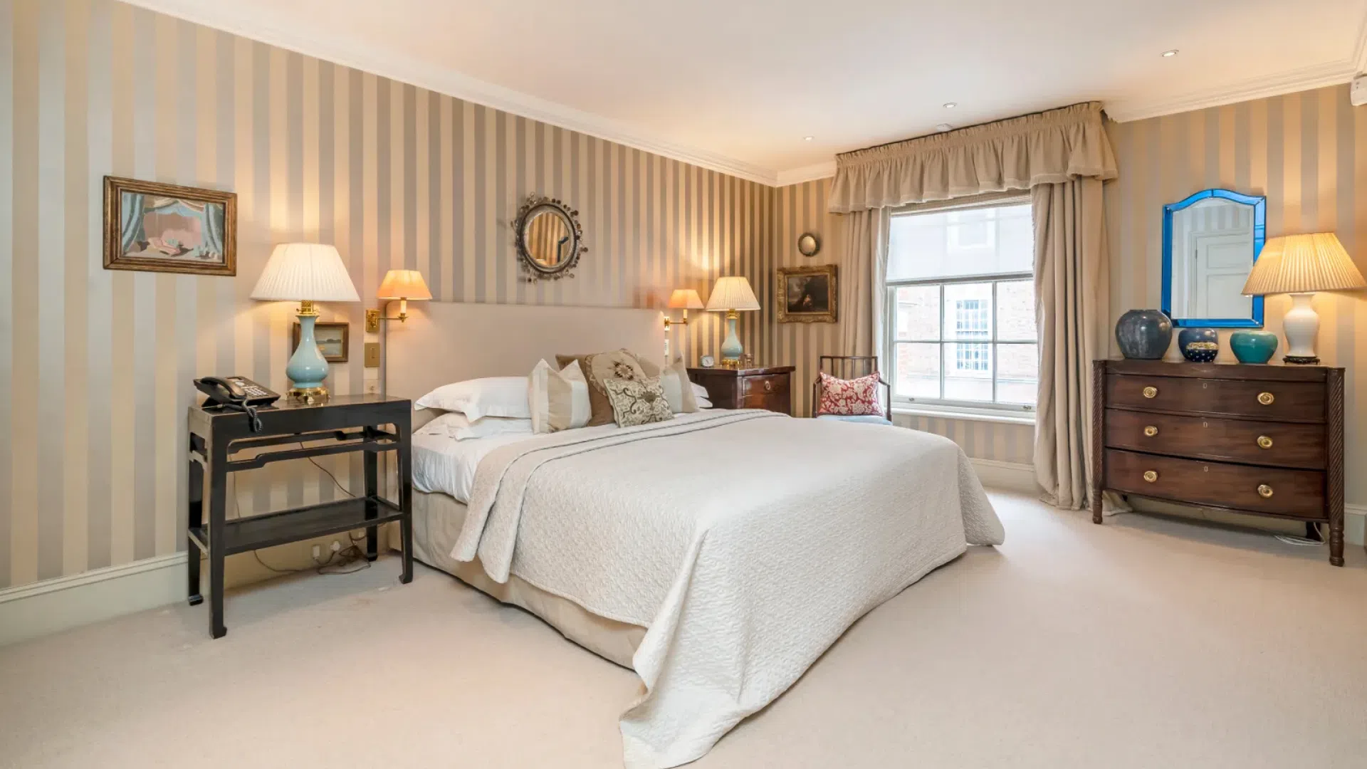 The townhouse's bedrooms are the epitome of sophistication and comfort. Antique furniture adds elegance to the space, while a neutral color palette creates an atmosphere of tranquility and harmony. Small paintings and mirrors adorn the walls, further enhancing the bedroom's coziness.