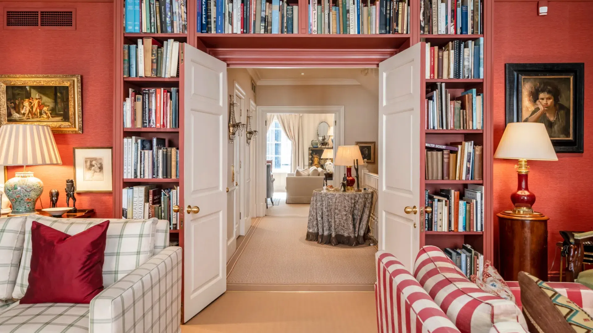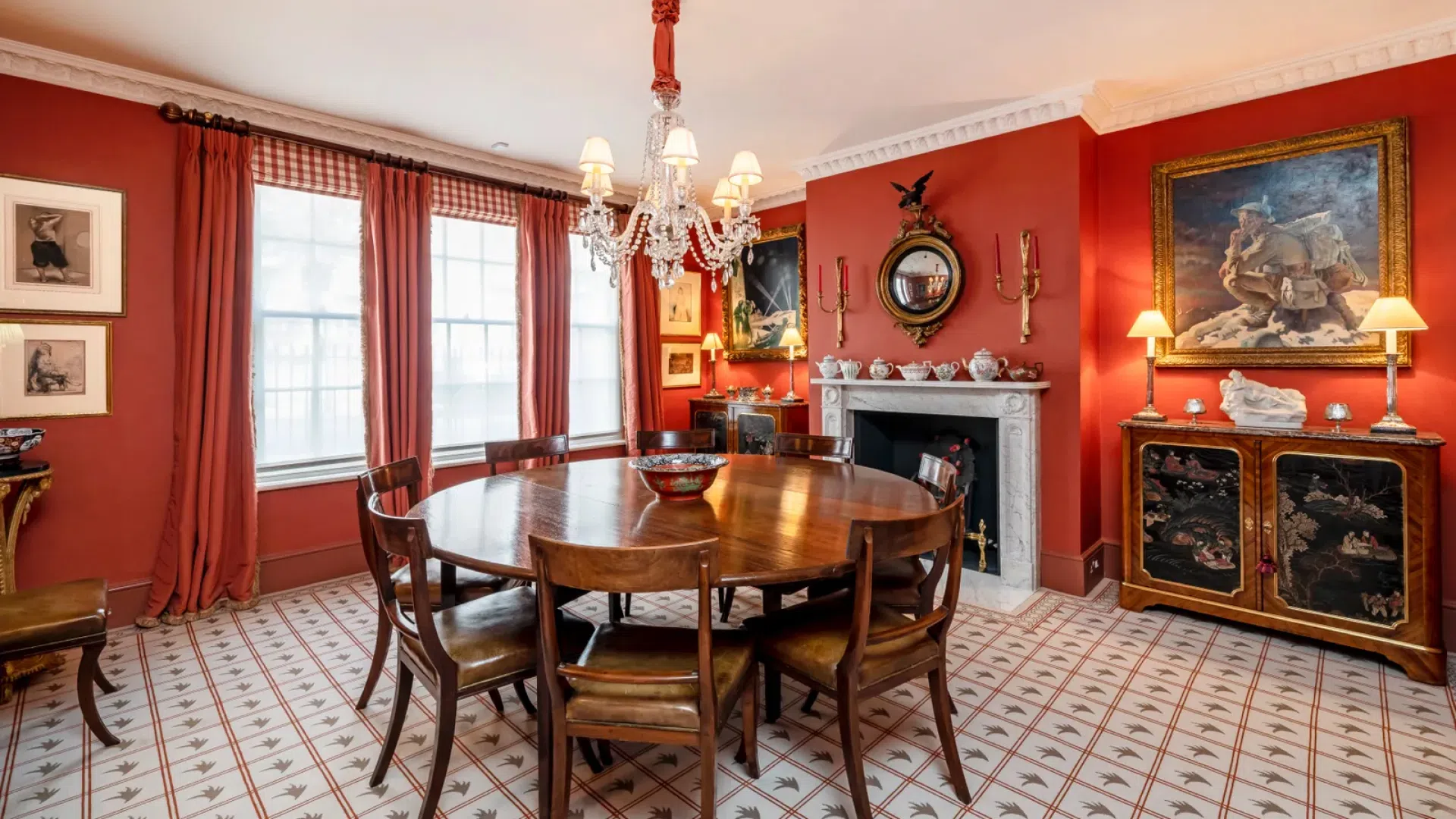 The townhouse's dining room is primarily red, with a predominant golden hue in the decorative elements. These colors create an atmosphere of coziness and formality, ideally suited for family dinners and official receptions.
