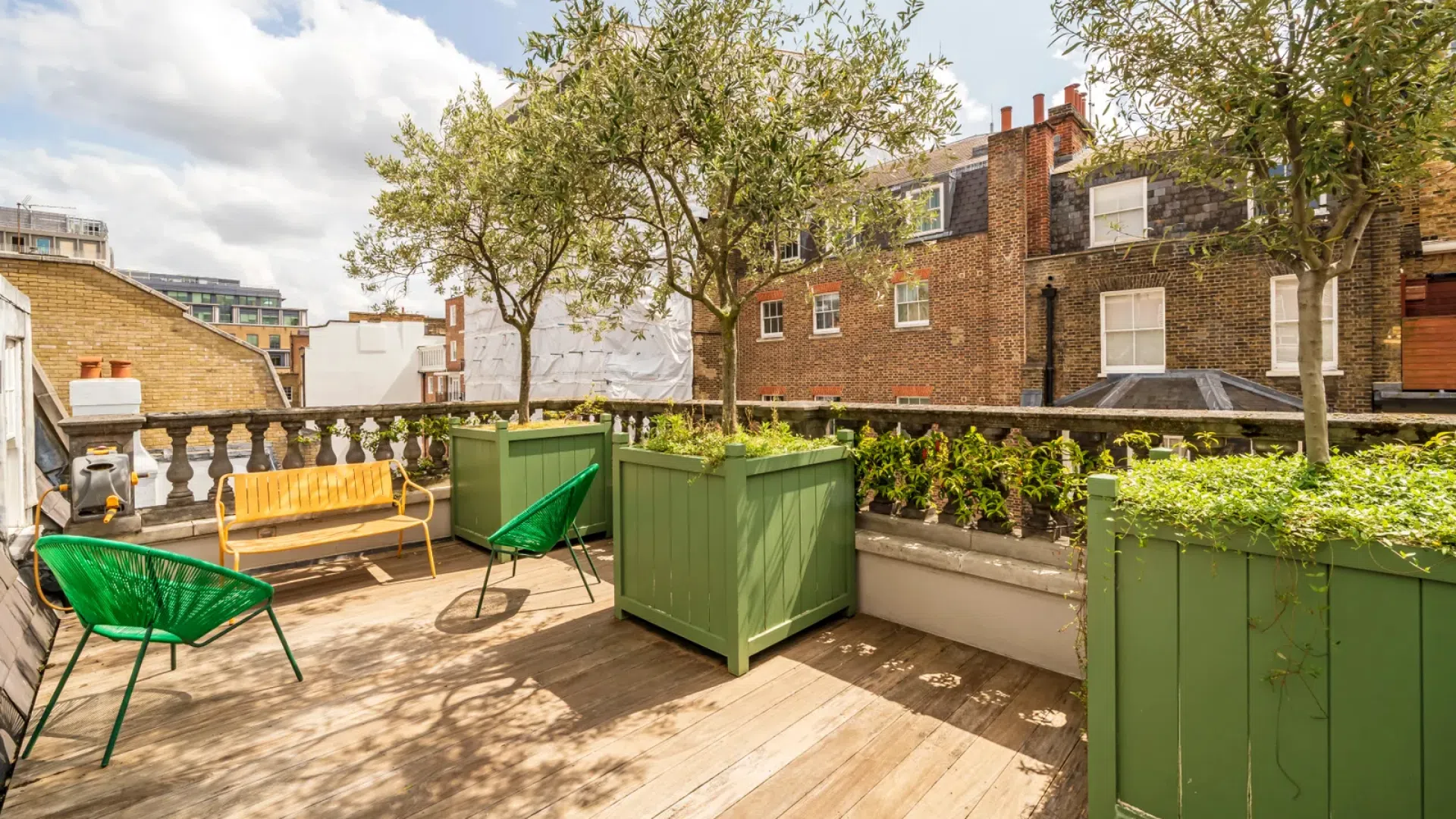 The master bedroom leads to a cozy rooftop terrace, where one can enjoy a pleasant time with coffee or reading a book.