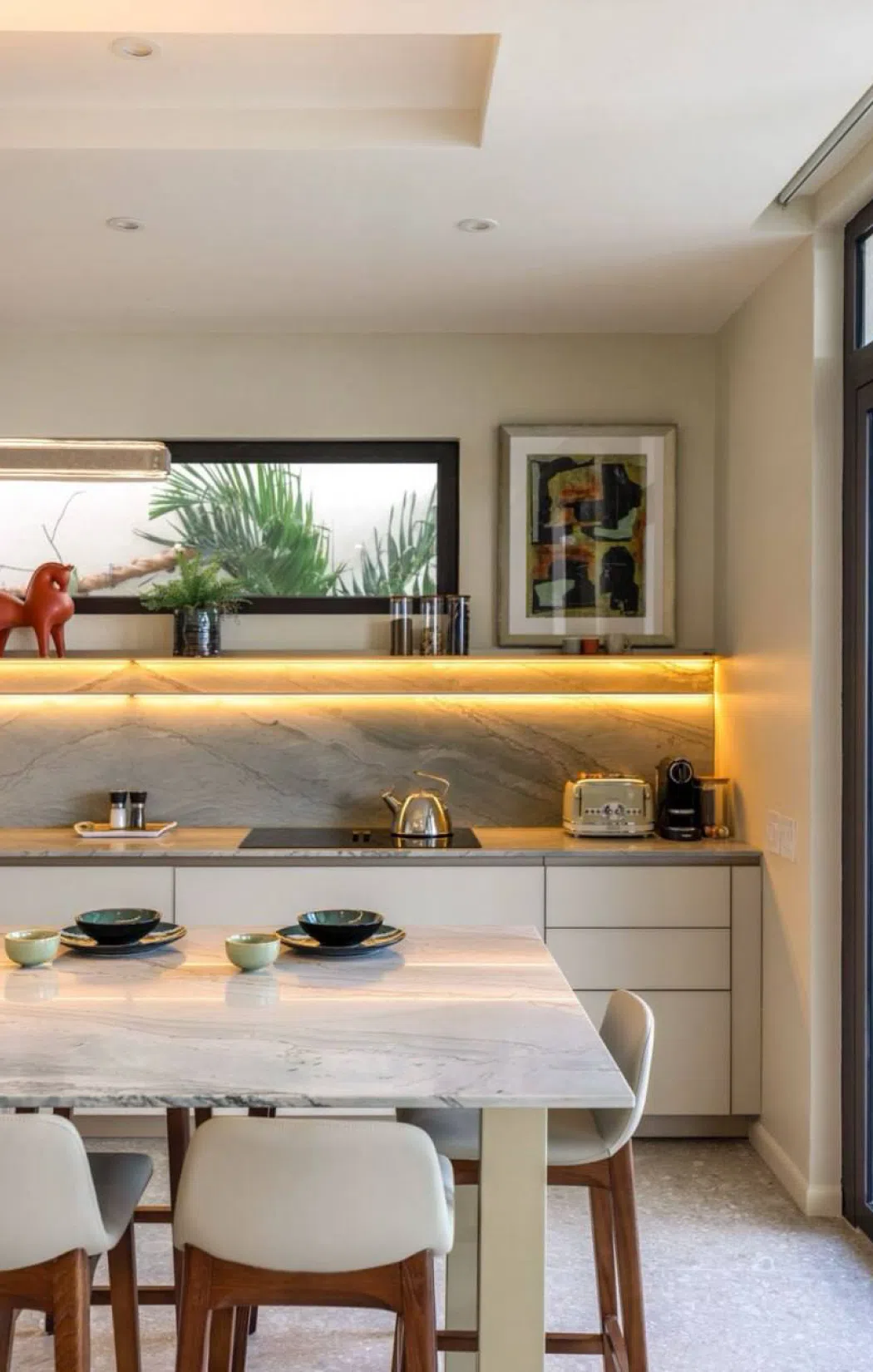 Seamless architectural integration: The furniture, built-ins, and architecture merge as part of the spatial logic to create cohesive living areas explicitly designed with the layout in mind.