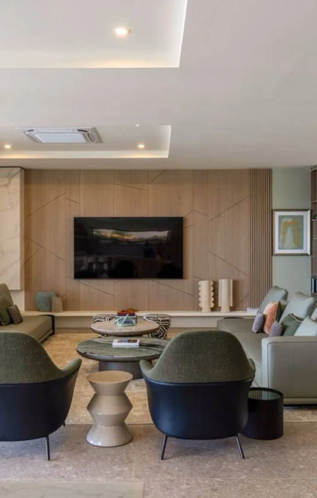 Custom spatial adaptation: The scale and arrangement of sofas, cabinets, and seating components are tailored to the space's dimensions, prioritizing flexibility over making a product statement.
