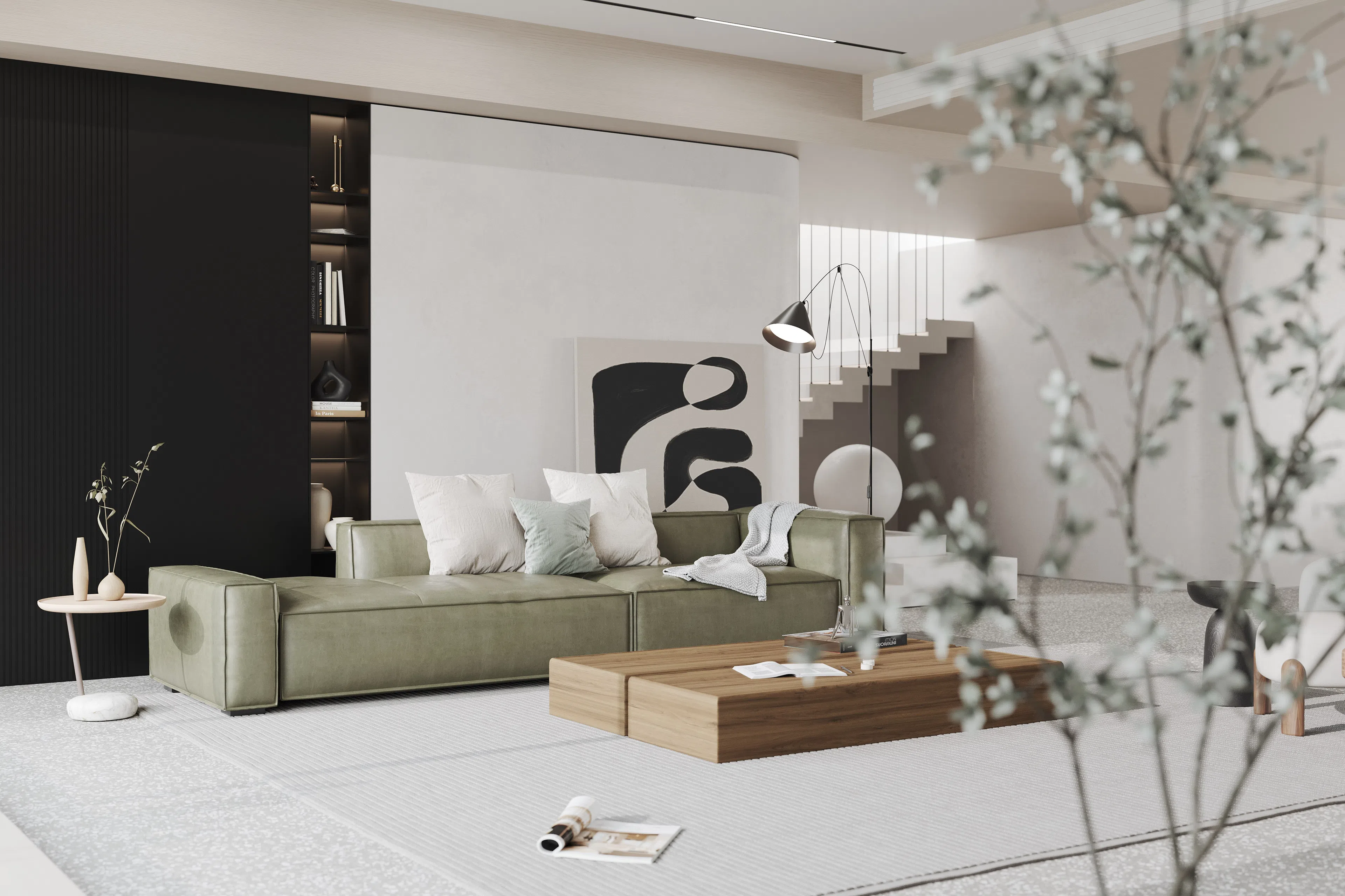 For serene summer evenings, forgo the main lighting in favor of floor lamps, candles, or even mini-fireplaces that cast a soft, inviting glow.
