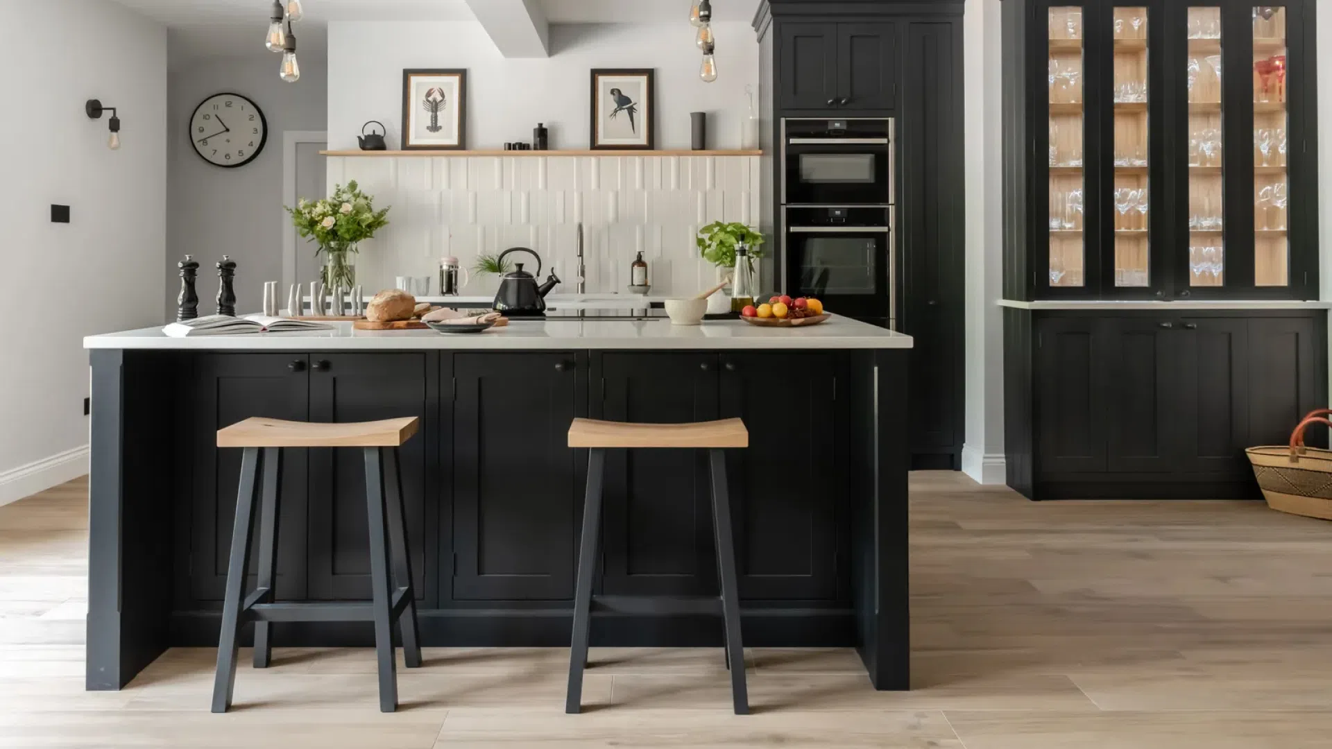 Combining different materials, such as tiles and wood, creates interesting geometric patterns and adds uniqueness to the space. Moreover, this approach can effectively highlight specific areas, such as the work surface or dining area.