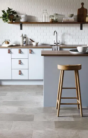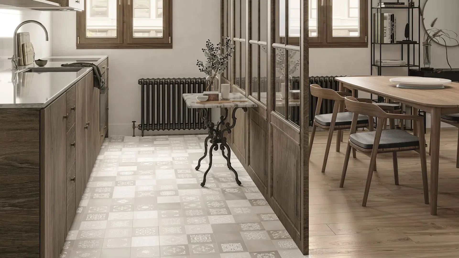 Porcelain tiles are available in a wide variety of patterns and textures. Some options mimic natural stone and wood, as well as vibrant geometric or floral designs. In addition to their visual advantages, this material is water-resistant and easy to clean, making it an excellent choice for kitchen flooring.