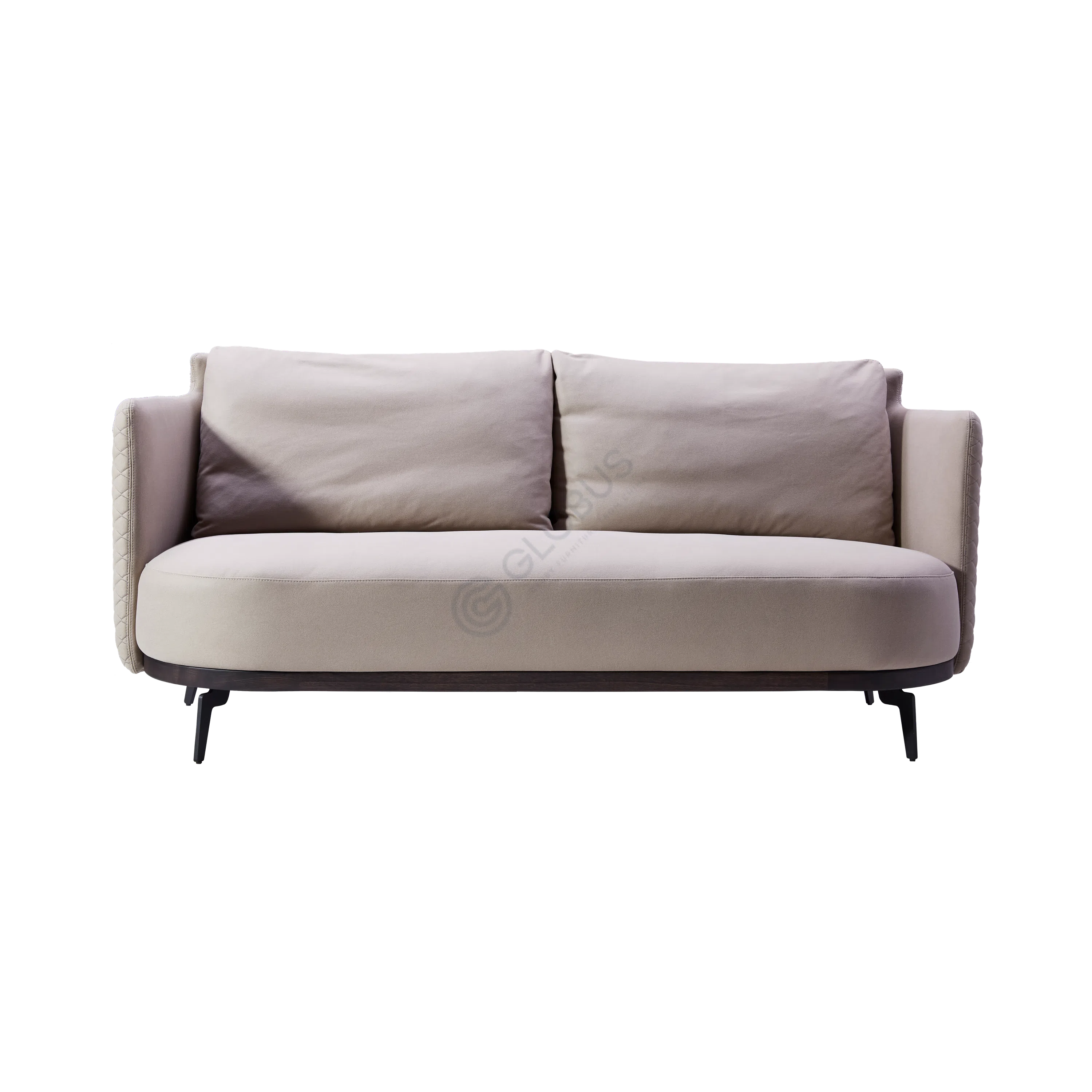 Constructed with quality materials, the frame is built using durable solid wood and supportive plywood, providing a sturdy foundation. Elegant legs made from carbon steel elevate the structure, contributing to its contemporary appeal. The seating area is generously padded and filled with feather, offering exceptional softness, upholstered in a high-quality textile chosen for both look and feel.