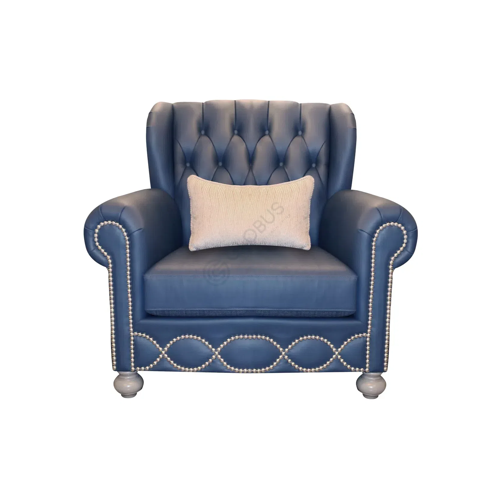 This sofa embodies timeless elegance in an American classic style, perfect for a refined living room. Upholstered in a beautiful deep blue textile, its design features a distinguished high back with button tufting, offering both support and visual interest.
