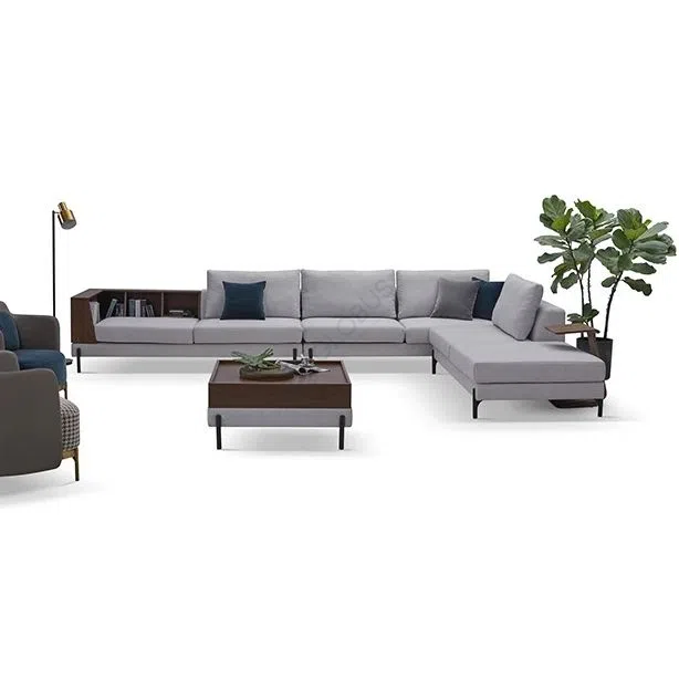The modular nature of this piece allows for versatile arrangement, easily adapting to different room layouts and needs. As shown, the chaise extension offers an inviting spot for lounging, while the overall length provides ample seating. This sofa is designed for both aesthetic appeal and practical comfort, making it a central piece for any modern home.