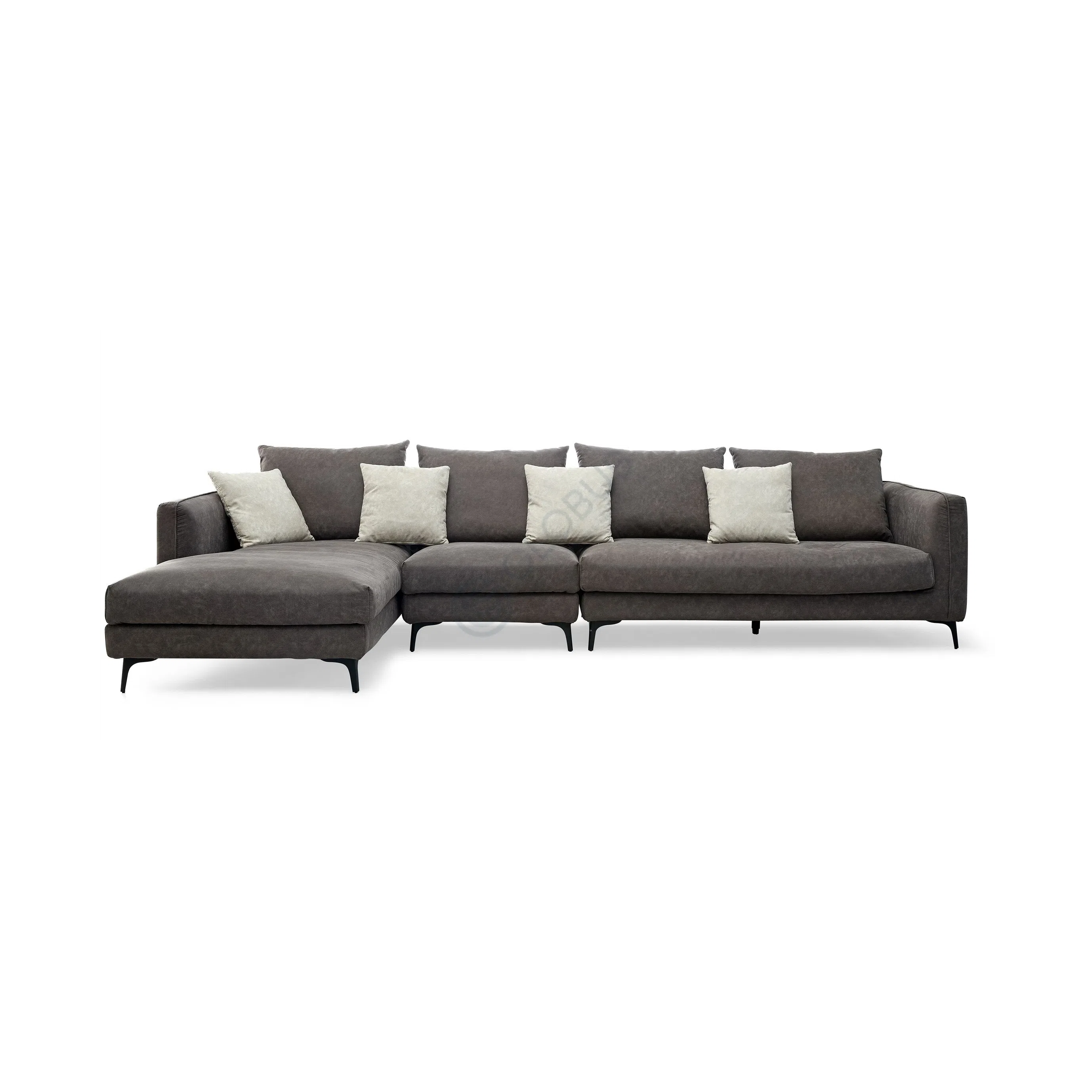 The structure is built upon durable materials including solid wood and plywood, ensuring stability and longevity. Carbon steel forms the sleek, understated legs that elevate the piece, adding a touch of contemporary flair. The seating is designed for relaxation, incorporating feather fill for a plush and yielding feel that molds to comfortable support.