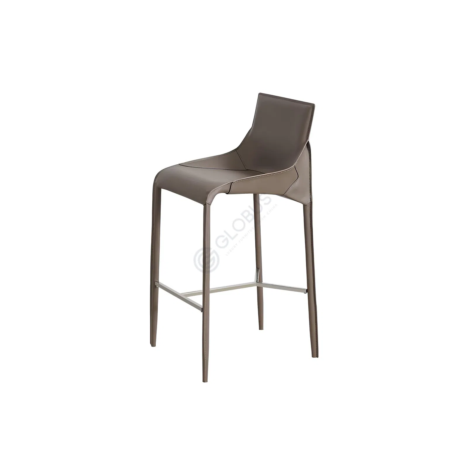 A slender steel frame supports a gently curved seat and backrest wrapped in smooth saddle leather. The clean silhouette and tapered legs give the chair a modern presence without overwhelming the surrounding space.