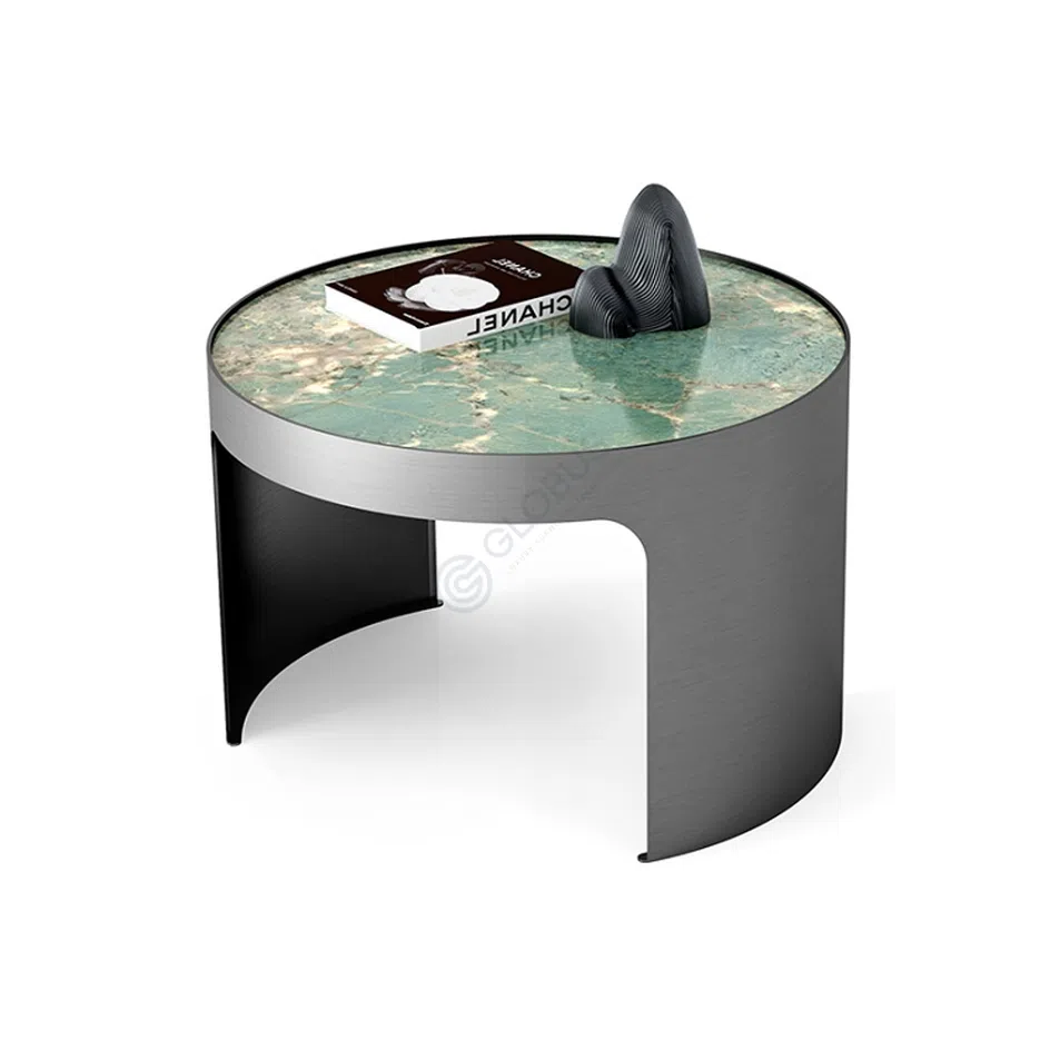 The sintered stone top showcases an eye-catching surface, ideal for displaying books or decorative items, while the sturdy stainless steel frame ensures durability and stability. The simple yet sophisticated design makes it a versatile addition to various interior styles, from minimalist to eclectic.
