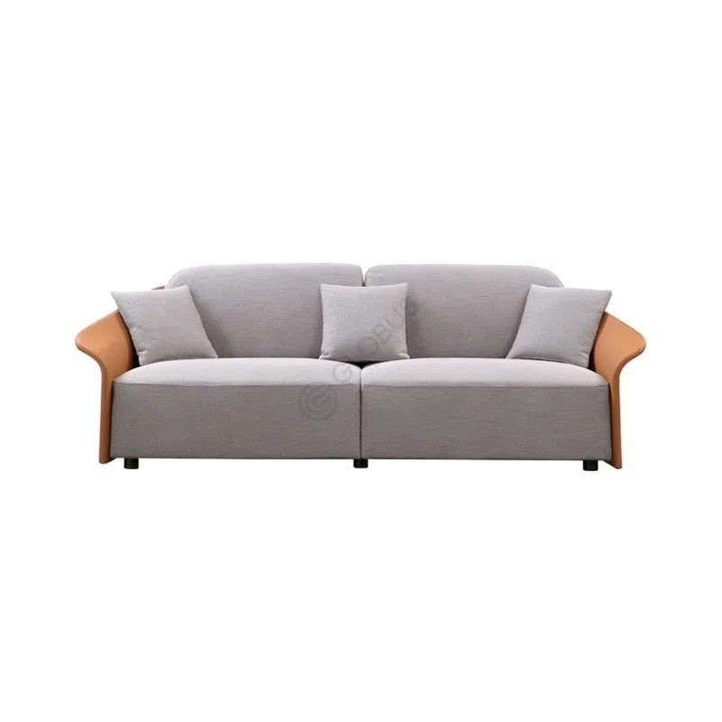 Crafted with a solid wood and plywood internal structure, the armchair offers robust support. The seating surfaces are upholstered in luxurious leather, providing a smooth, premium feel, while a textile cushion adds a touch of comfort and texture. The combination of these materials enhances both durability and aesthetic appeal.