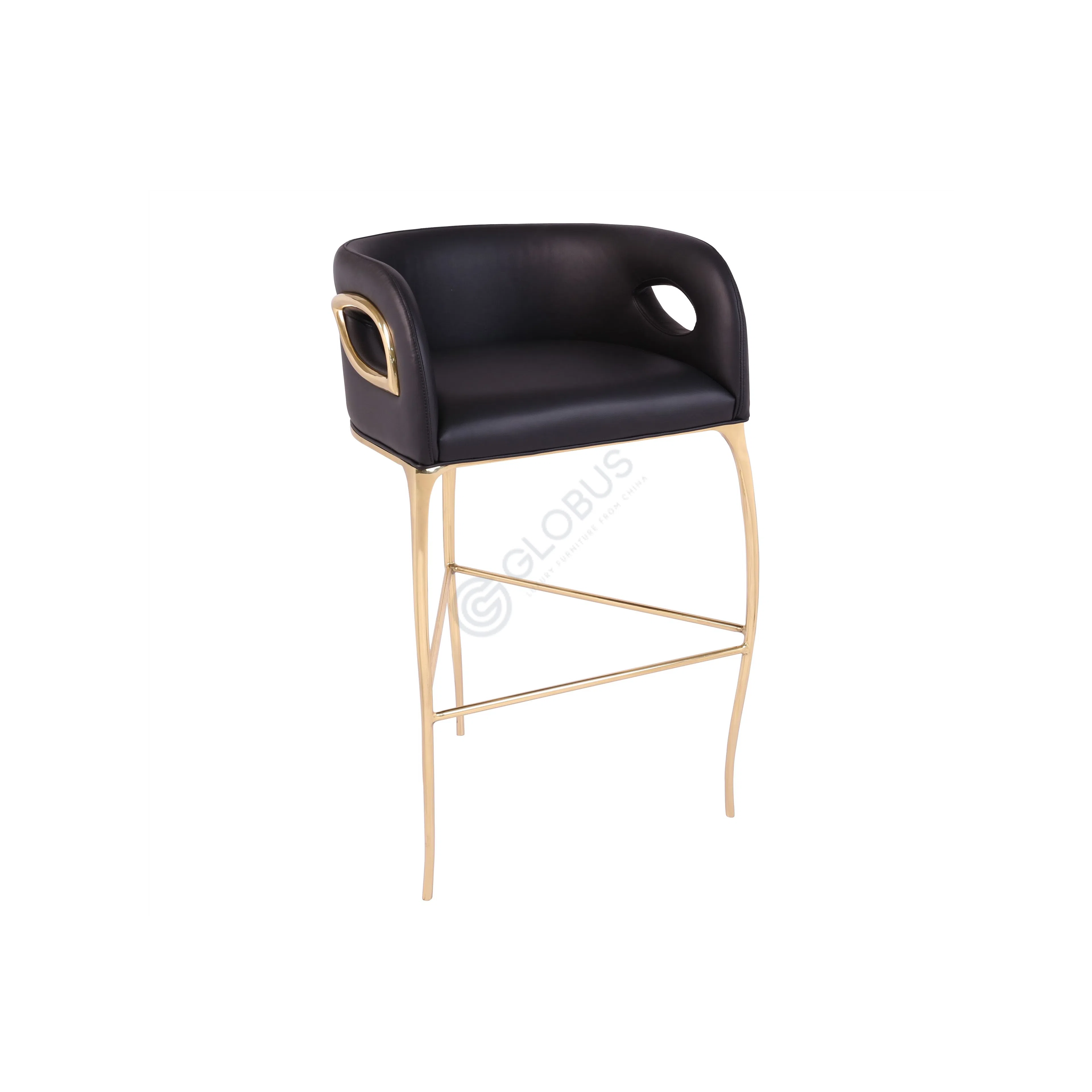 Inspired by the Art Deco era, the chair features distinct open armrests highlighted by a graceful brass accent. This metallic detail adds a touch of luxury and visual interest. The slender, curved legs, also finished in brass, complement the armrests and lend a light, airy quality to the overall structure.