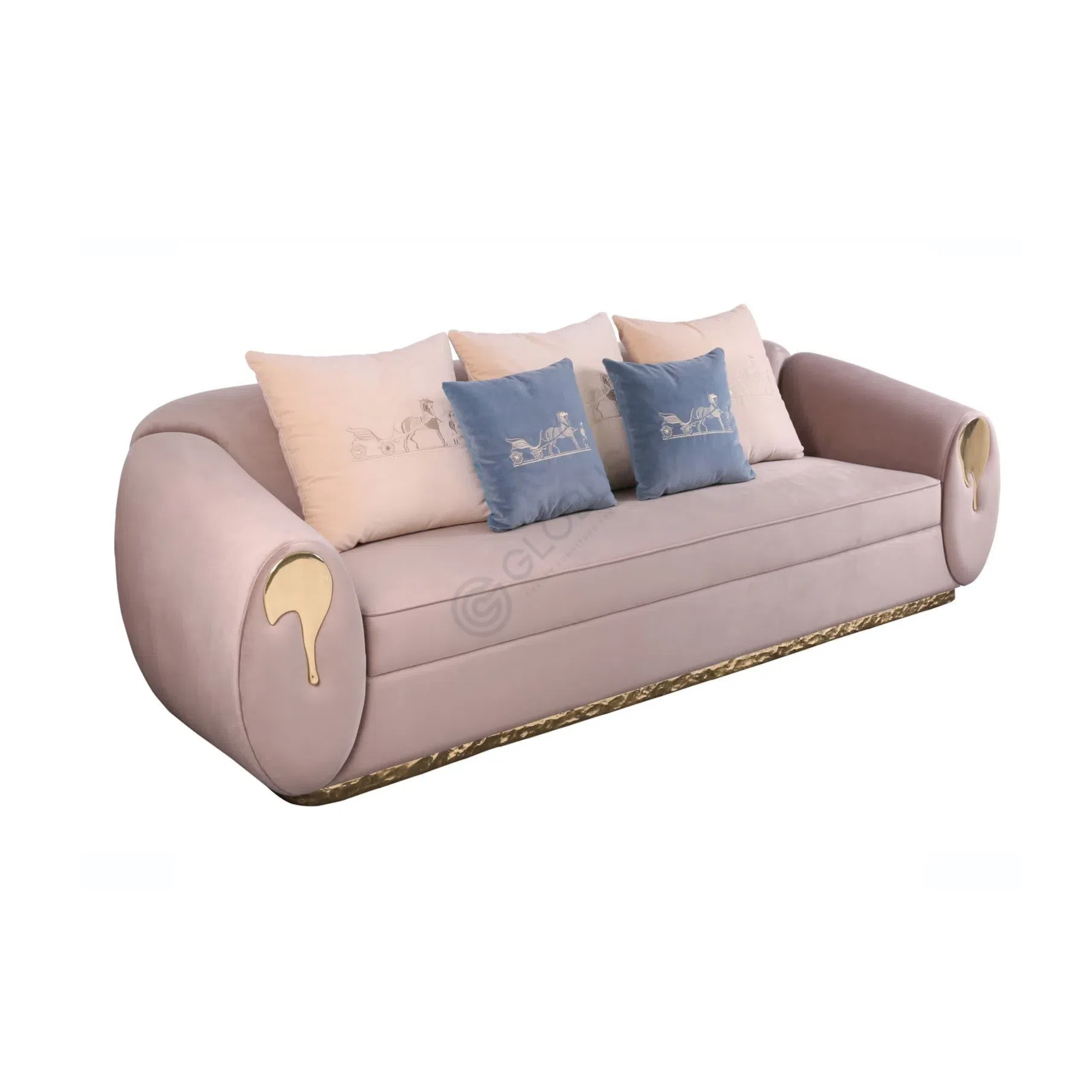 The chair stands on elegant legs crafted from solid brass. Their slender, curved form provides a delicate yet stable base, enhancing the chair's sophisticated appeal and reflecting its Art Deco and modern design influences.