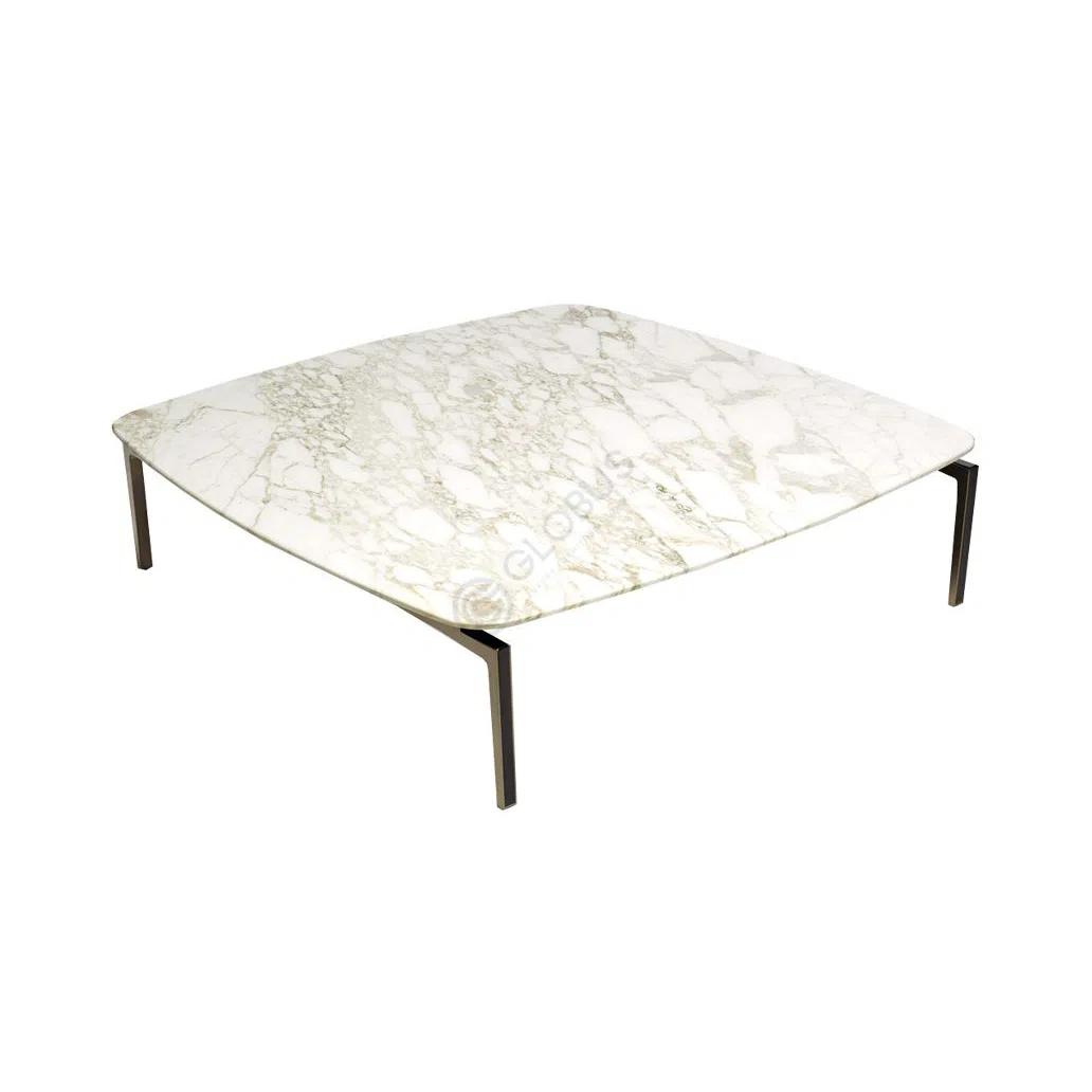 The facade features large panels of natural marble, each displaying unique, organic patterns and veins that bring an element of natural beauty and luxury to the design. These distinct surfaces create a captivating visual texture that is both dynamic and timeless.