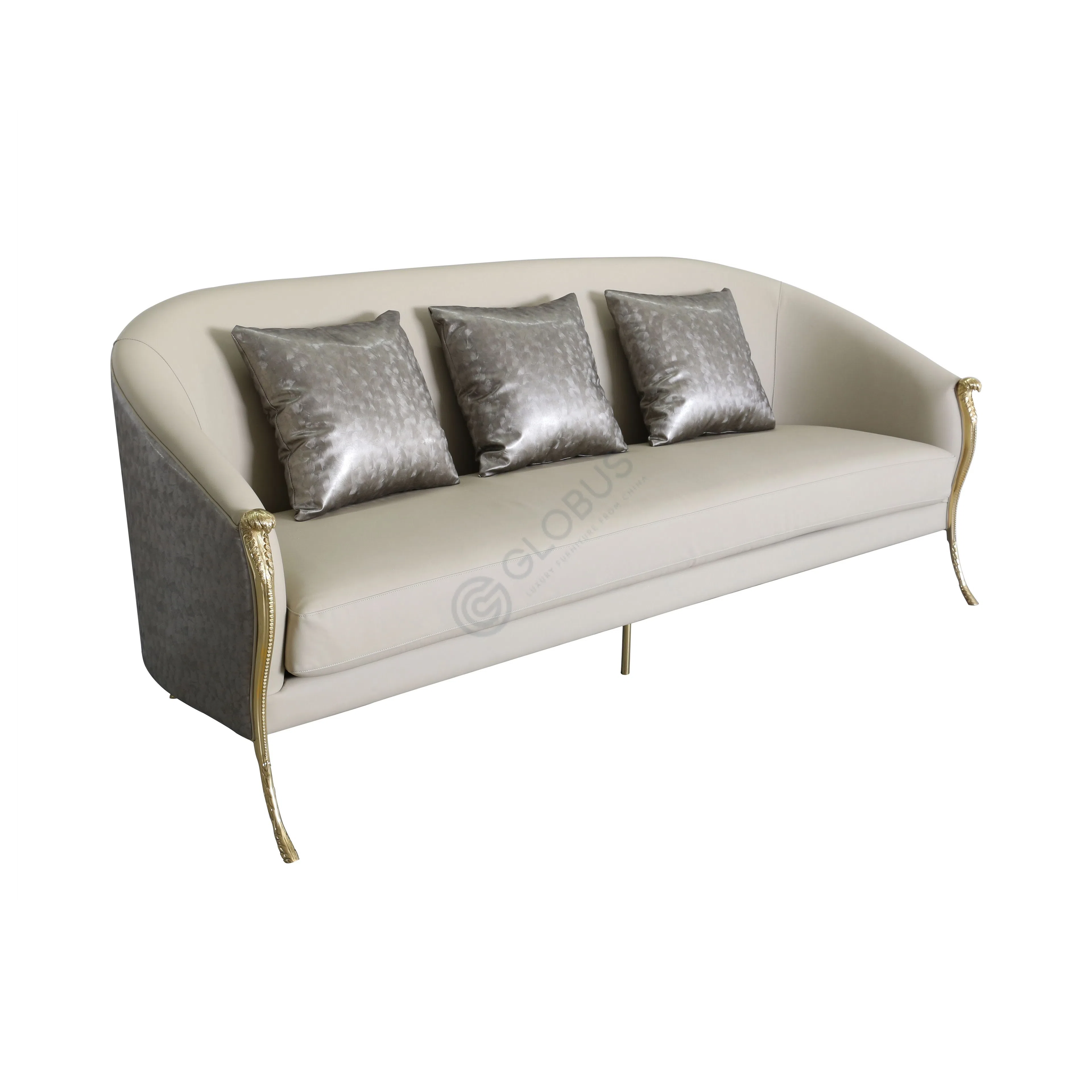 The polished brass elements and the gentle curves of the design capture the essence of Art Deco glamour, offering both visual appeal and a comfortable place to relax.