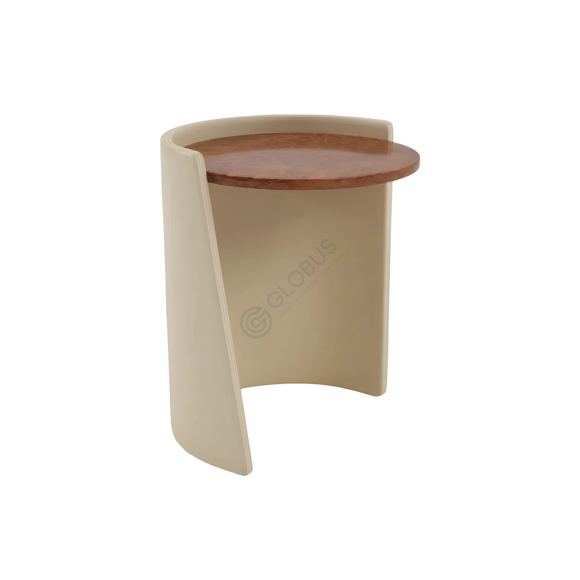 The table's durable structure is expertly formed from plywood, providing a solid and dependable base. A rich natural veneer graces the tabletop, revealing unique wood grain patterns that infuse the piece with natural beauty and warmth. The curved base is thoughtfully finished with soft microfiber leather, offering a refined texture and a pleasing visual counterpoint to the wood surface.