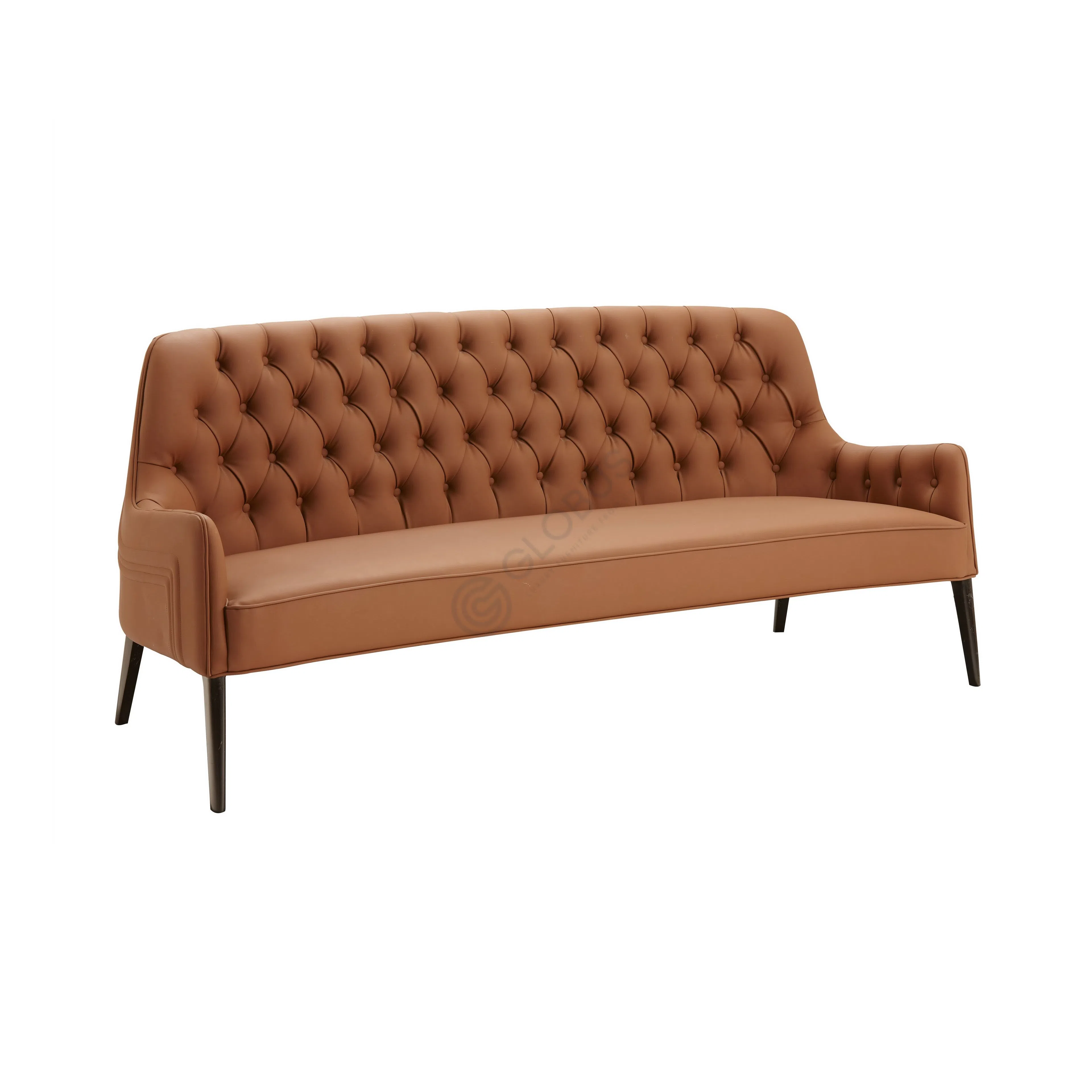 Upholstered in a combination of soft suede leather and durable PU, the armchair offers both comfort and refined style. The structured exterior panels contrast subtly with the plush interior. It rests on solid wood legs, providing sturdy support and a clean, elevated look.