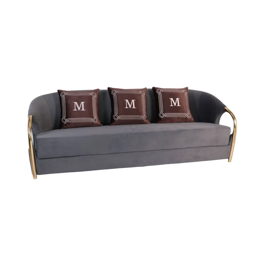 Crafted with a solid wood frame, this armchair is upholstered in a luxurious combination of PU and leather, offering both durability and a sophisticated touch. A striking brass element forms the distinct armrest, providing a gleaming contrast to the rich upholstery and highlighting the piece's unique design.