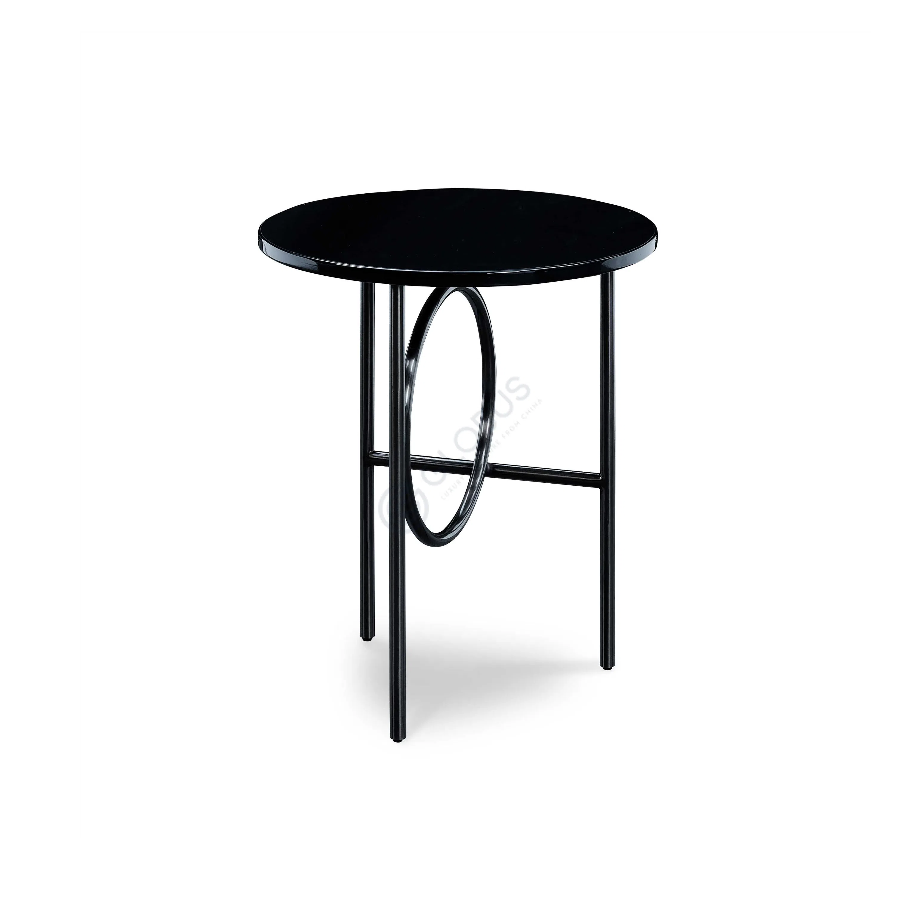 The stainless steel base, with its geometric framework and bold circular accent, provides both visual interest and sturdy support. This design element enhances the table's contemporary appeal while ensuring lasting durability.
