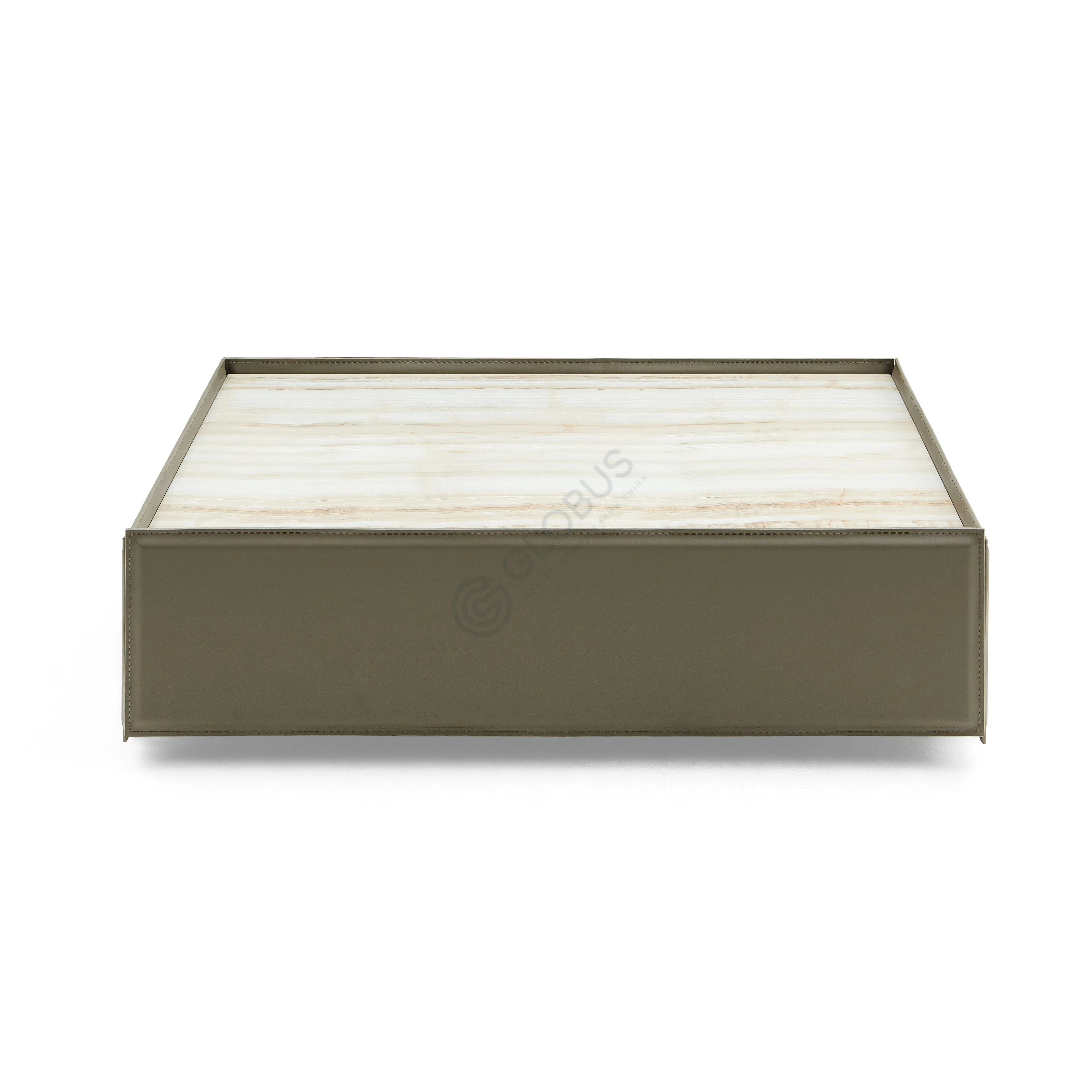 The table features a top crafted from elegant natural marble, providing a durable and visually appealing surface. Below, the body is meticulously wrapped in Eco Saddle Microfiber, offering a tactile richness and refined appearance. The underlying structure is built with sturdy plywood, ensuring lasting quality and stability.