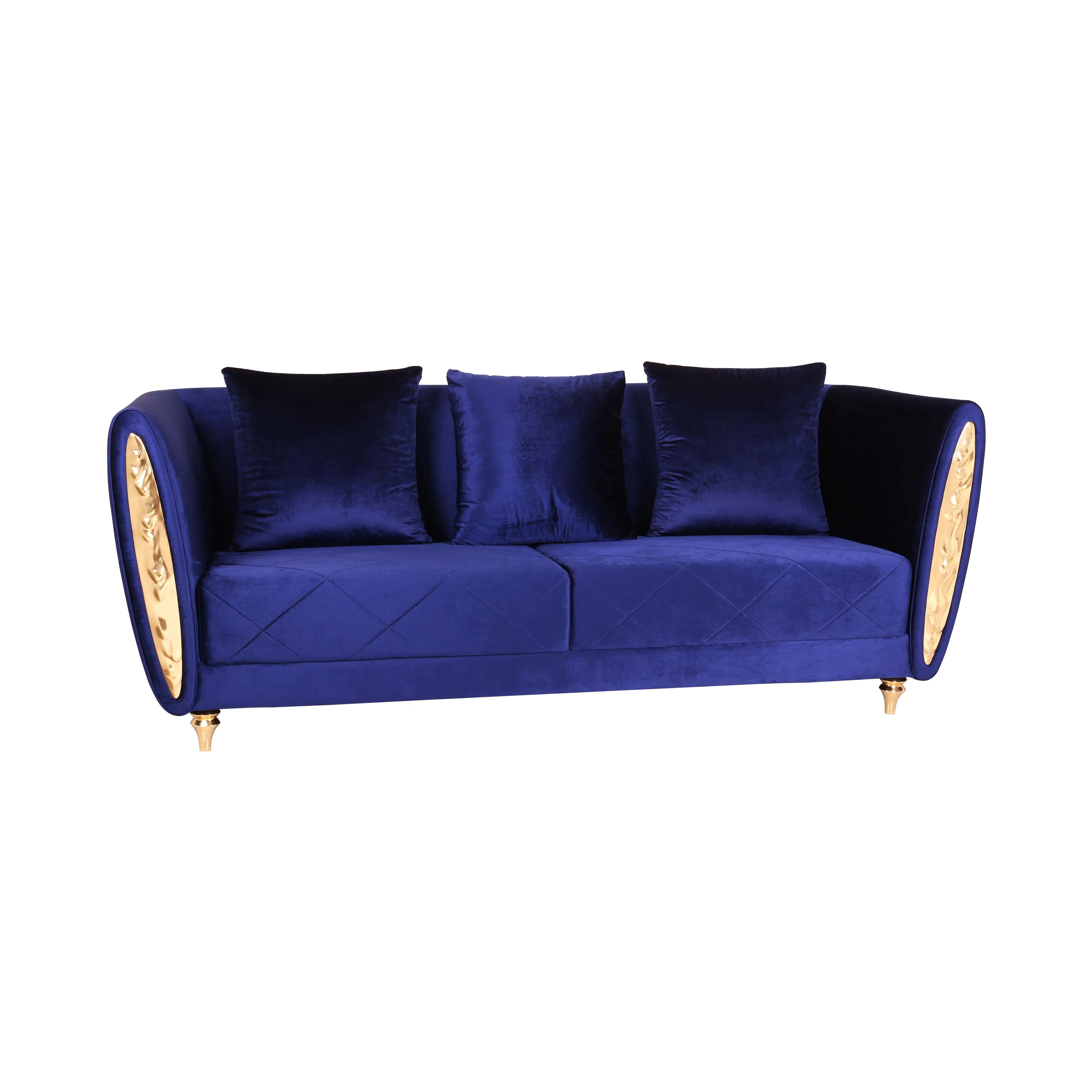 Ideal for a living room, this piece serves as a comfortable reading chair or a stylish accent. It brings a blend of plush texture and gleaming metallic details, adding a focal point that enhances the room's decorative theme.