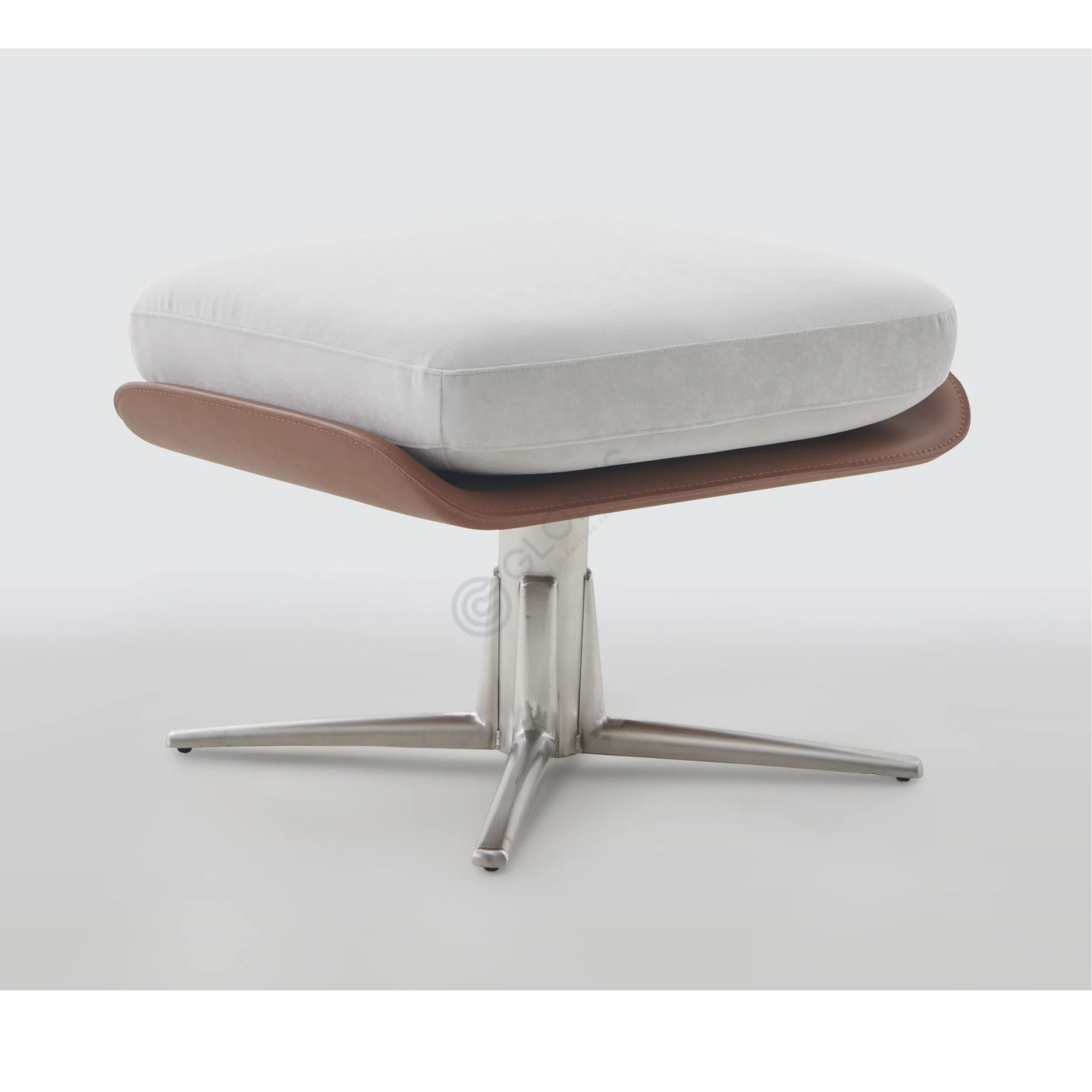 Supporting the armchair is a sleek four-star base rendered in polished stainless steel. This robust base provides stability and adds a contemporary touch to the overall design. Suitable for a living room, this armchair serves as a stylish and comfortable focal point.