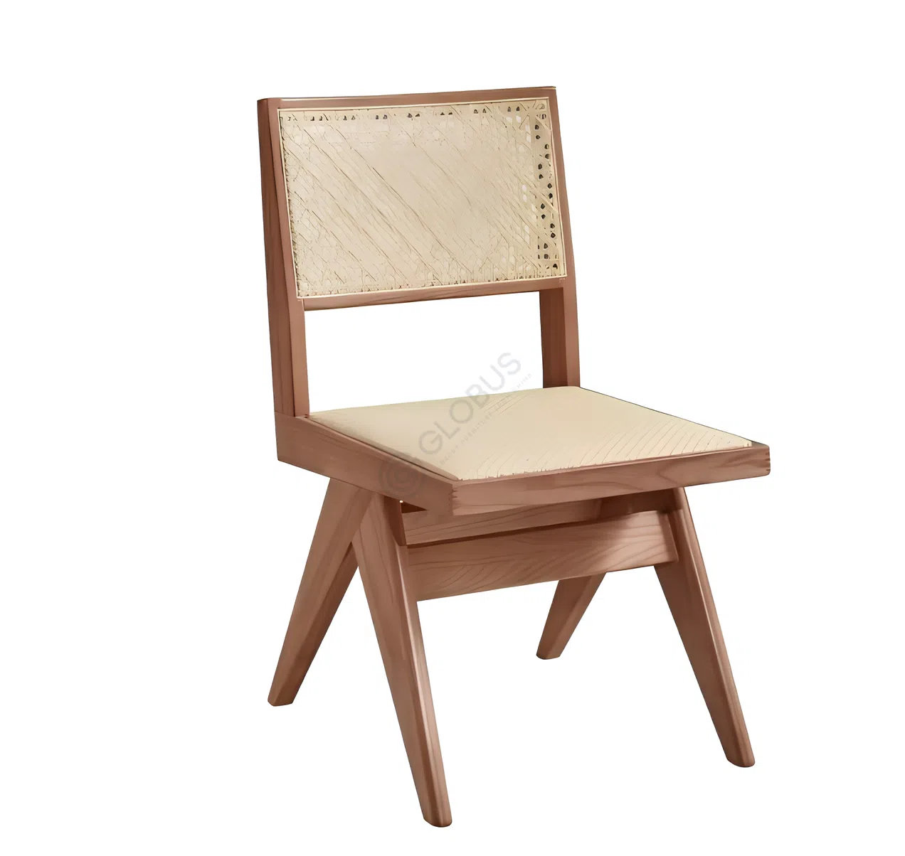 This armchair offers a harmonious blend of modern design and natural elements. Crafted from solid wood, its sturdy frame showcases a warm, inviting grain that complements any contemporary space. The seat and backrest feature finely woven natural rattan, adding a light, airy texture and a touch of organic elegance.