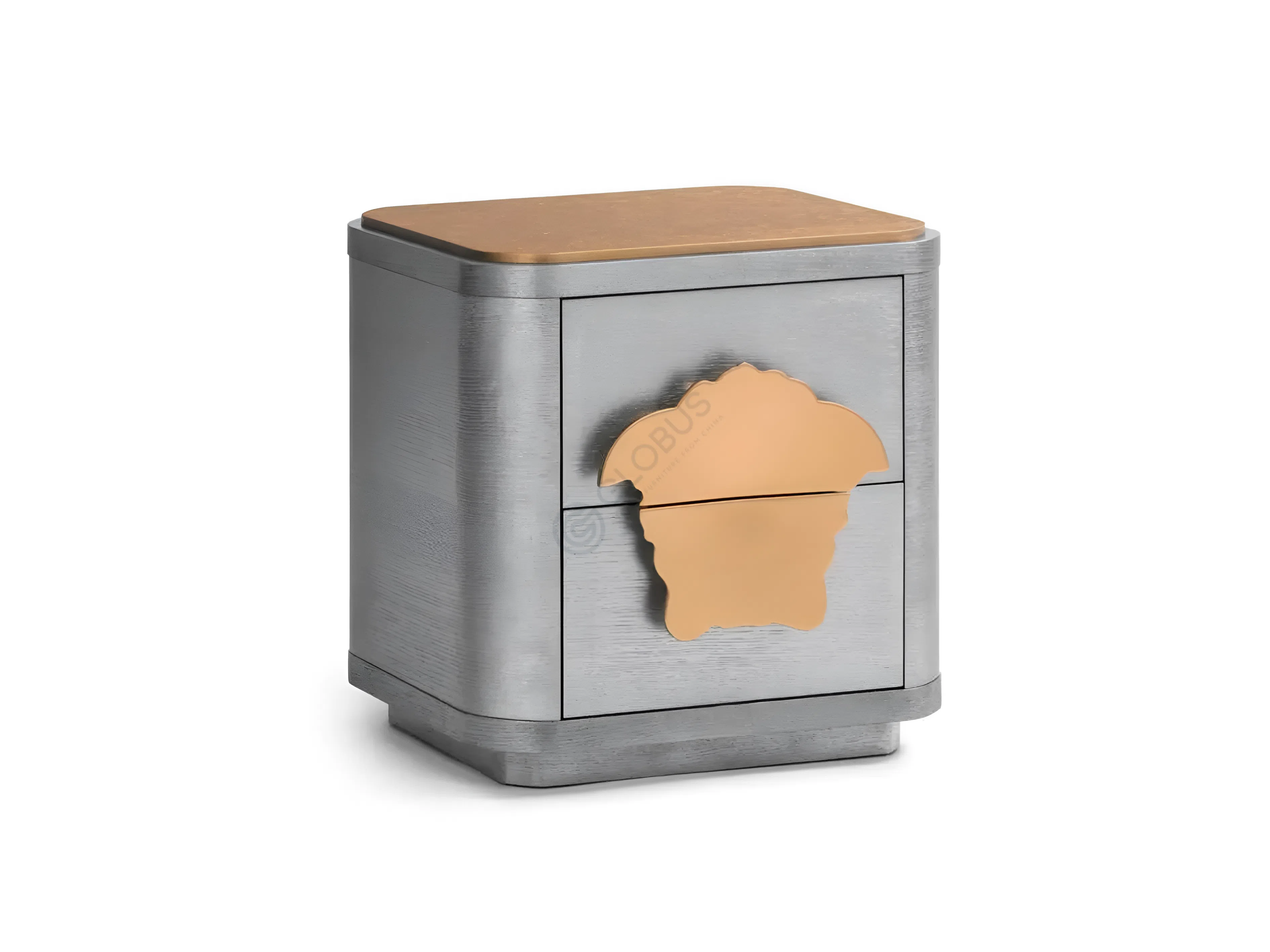 Crafted to high standards, the piece showcases visible wood grain, adding a tactile quality to its appearance. The contrasting elements provide visual intrigue and emphasize the sculptural nature of the design. The cabinet is supported by elegant, slender legs made from metal, offering a refined finish and lifting the form.