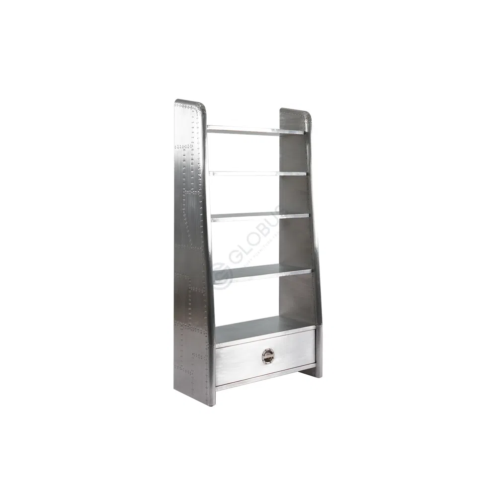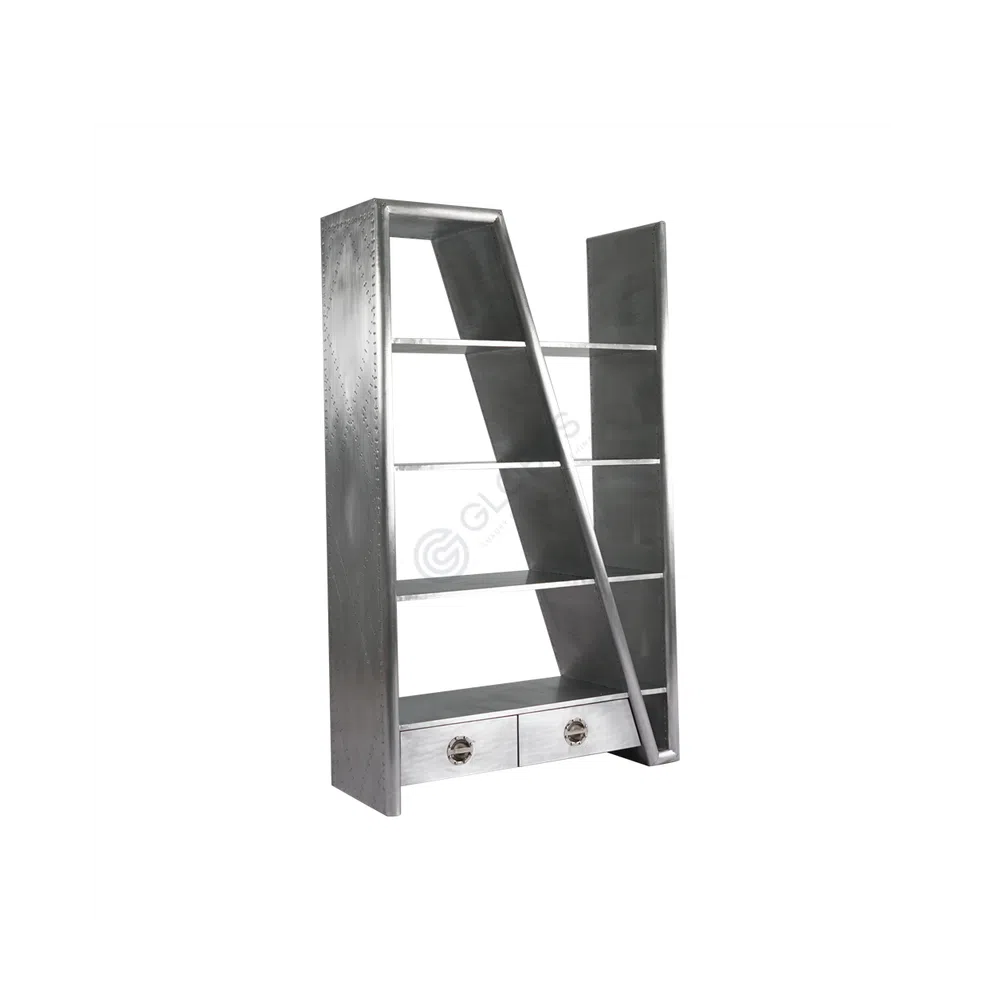 This bookshelf introduces a bold industrial character to any space. Crafted entirely from aluminum, its form is defined by clean lines and a striking metallic finish. The design draws inspiration from classic loft aesthetics, celebrating raw materials and functional structure in a refined manner.