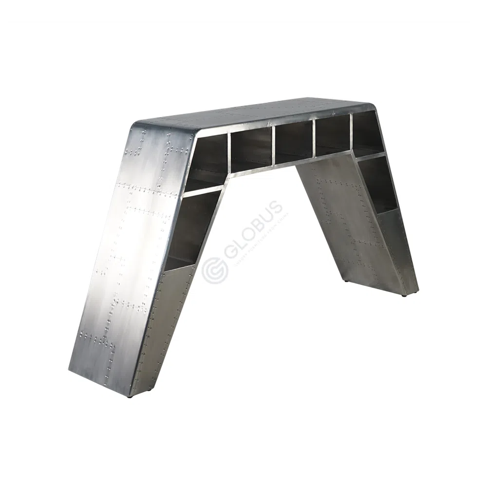 This desk makes a statement with its powerful, architectural form. Defined by clean lines and a substantial, trapezoidal silhouette, it serves as a commanding centerpiece for a contemporary home office. Its design captures the essence of the loft aesthetic, blending raw industrial character with refined execution.