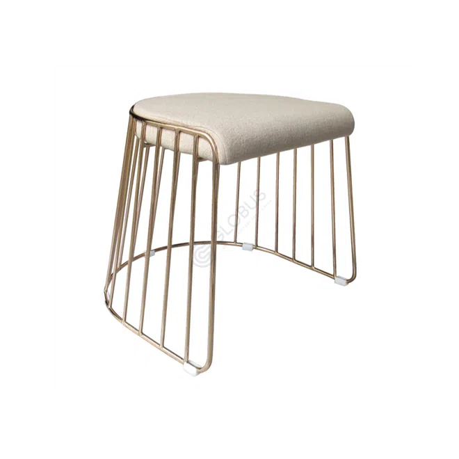 A striking dining chair presents a captivating silhouette. Its frame, crafted from stainless steel and finished in a gleaming gold, forms a delicate yet strong wire structure that elegantly supports the seat and back. This design beautifully blends Art Deco elegance with a clean, modern aesthetic, creating a piece that is both functional and sculptural.