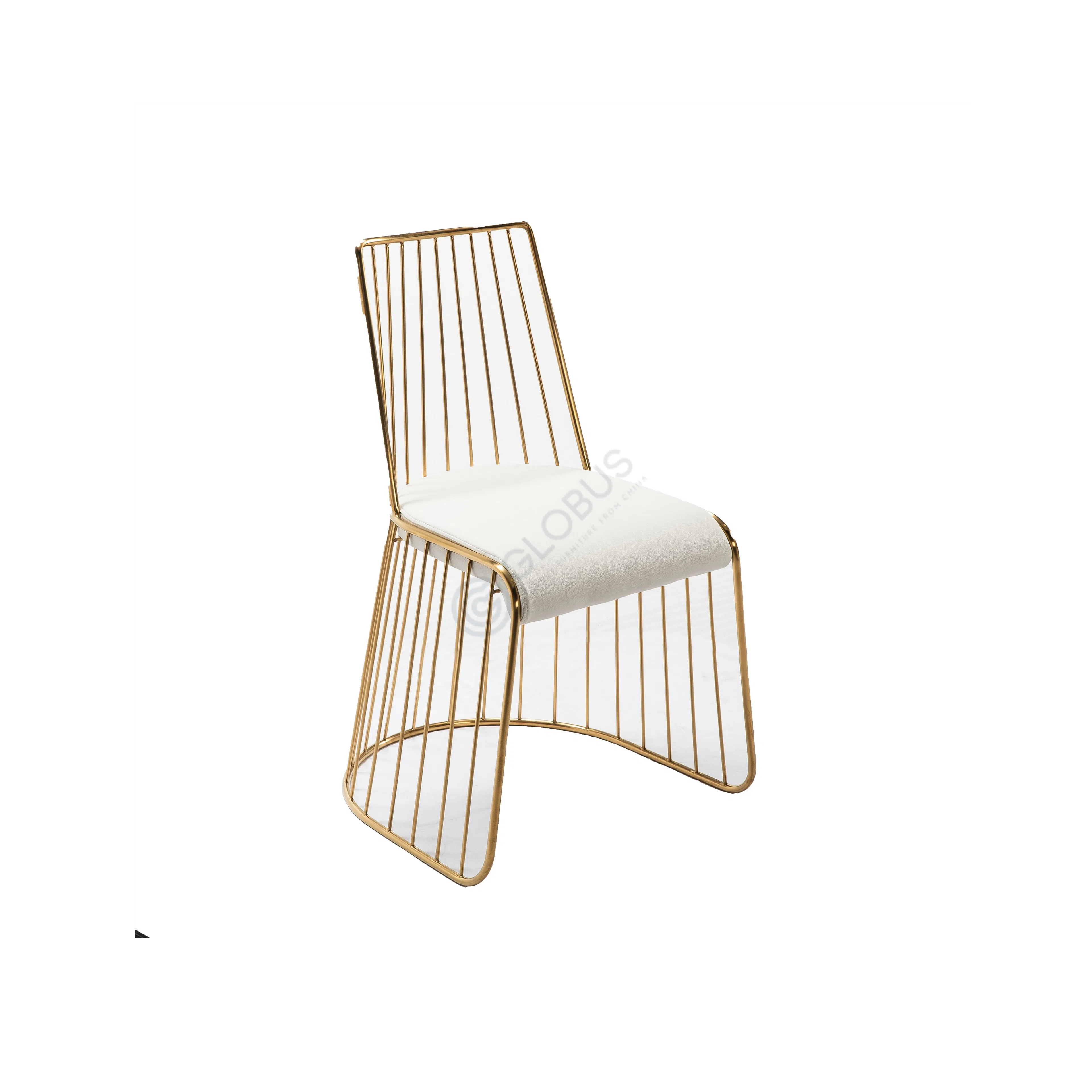 The pouf features a distinctive base crafted from slender stainless steel bars, creating a visually light yet sturdy structure. This metallic design, often finished in a subtle gold tone, draws inspiration from both the geometric elegance of Art Deco and a clean, modern aesthetic. The base curves gracefully, supporting a gently shaped, upholstered seat.