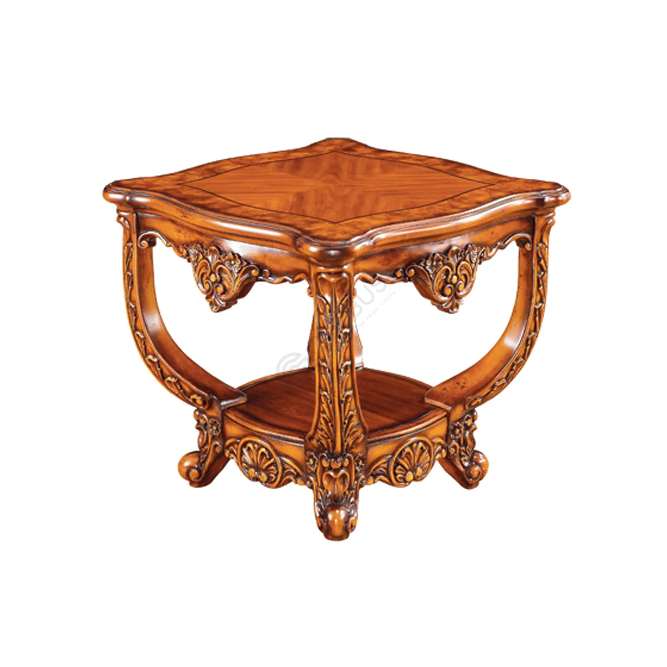 This European classic coffee table exudes elegance and sophistication, making it the perfect addition to any living room. Crafted with solid wood, natural veneer, and MDF, its exceptional quality and durability ensure long-lasting charm. Embrace the timeless beauty of this singular piece, adding a touch of refinement to your home decor.