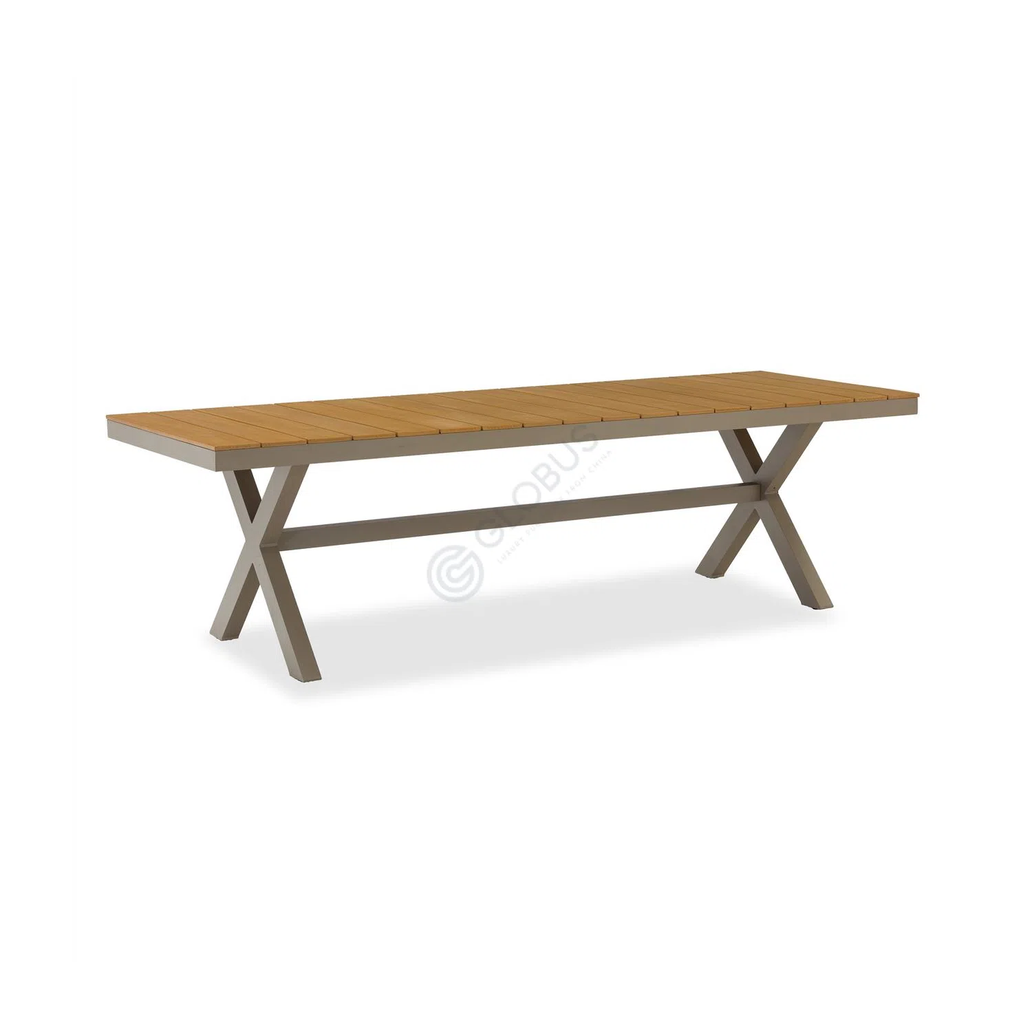 The table's clean lines and neutral tones will complement any surroundings, making it a perfect addition to your poolside, garden, or terrace. Its spacious surface provides ample room for your alfresco meals, casual get-togethers, or a tranquil outdoor workspace.
