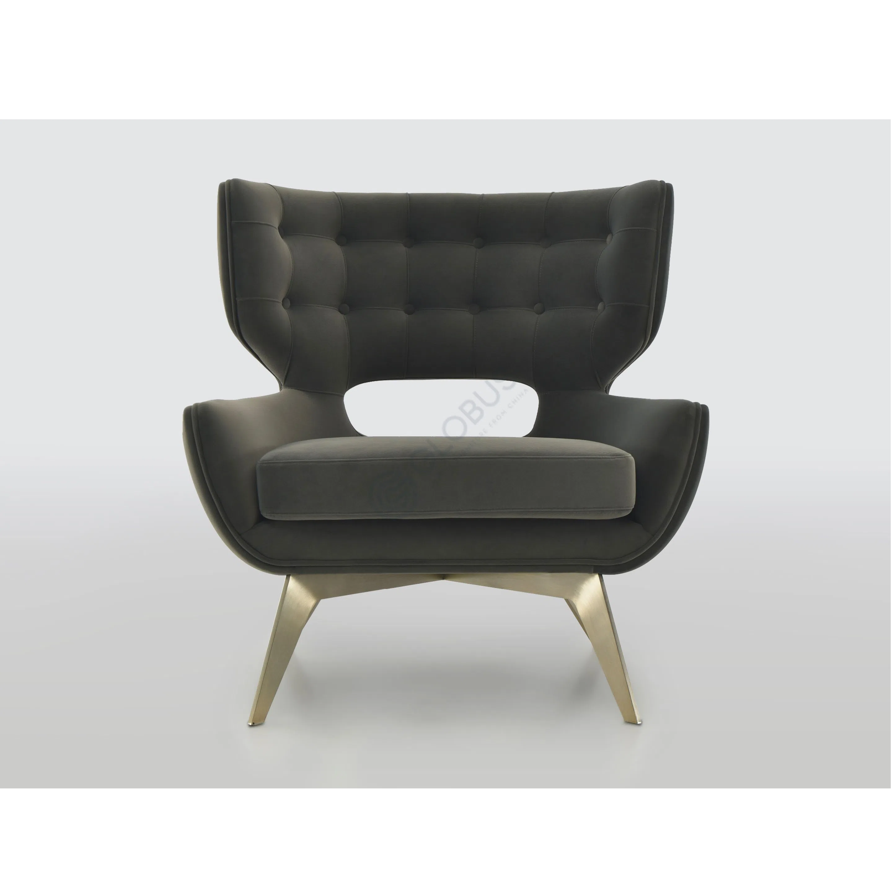 Underpinning its elegant upper structure, the chair features a thoughtfully engineered base. Sturdy plywood forms the broader rear legs, offering stable support. Contrasting this, sleek stainless steel legs emerge from the front, providing a delicate yet robust foundation. This material combination emphasizes the chair's modern character and ensures lasting durability.