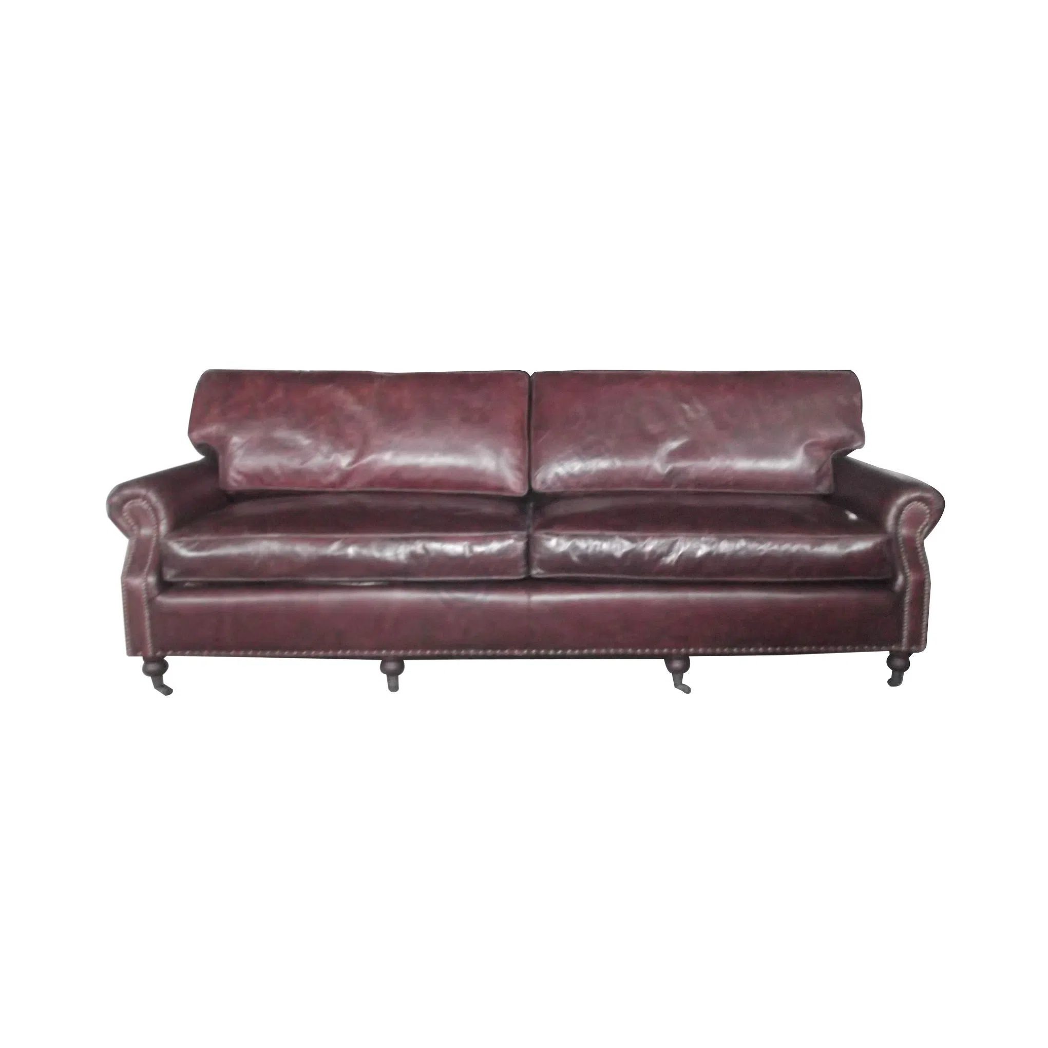 The design features classic rolled arms, a generous seat cushion, and a supportive backrest, all shaped for inviting comfort. Detailed nailhead trim follows the lines of the arms and base, adding a touch of refined detail that complements the armchair's robust form.