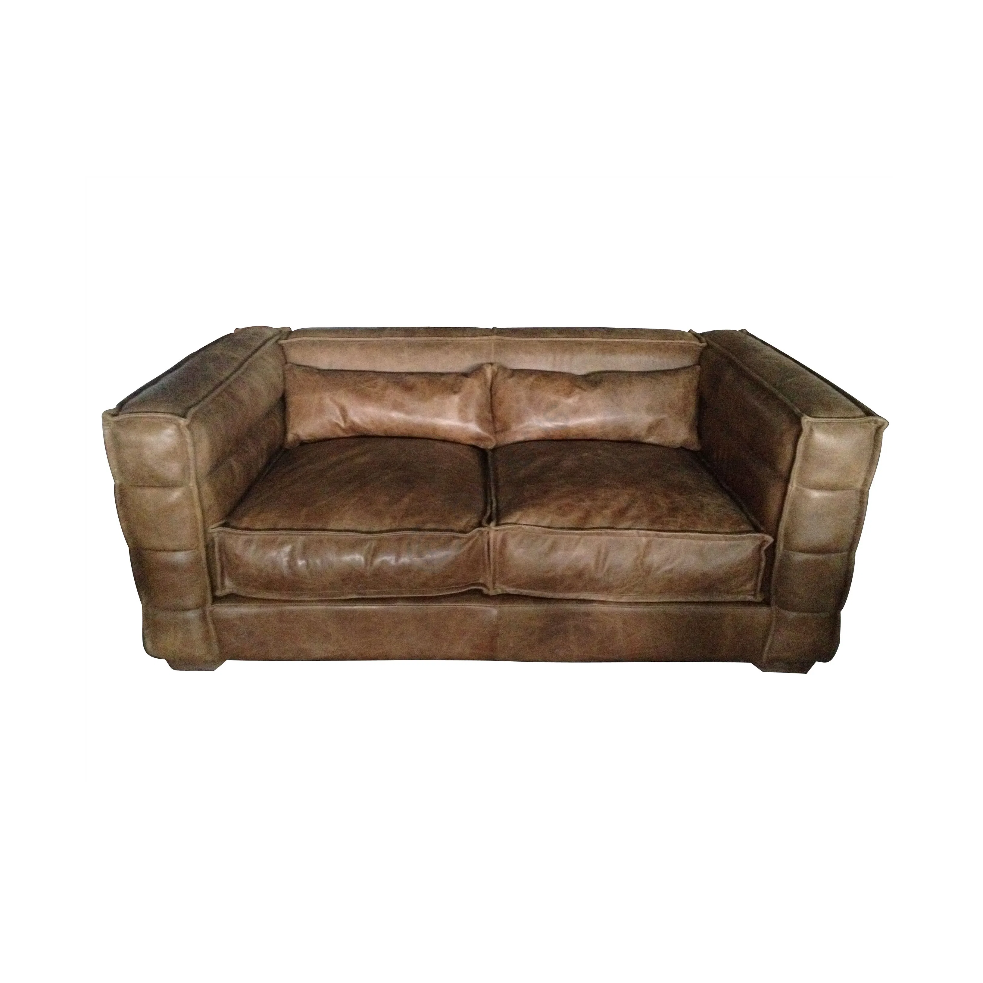 This armchair presents a robust form with a distinctive aged appearance. Its rich, distressed finish evokes character and warmth, defining a space with an urban edge.