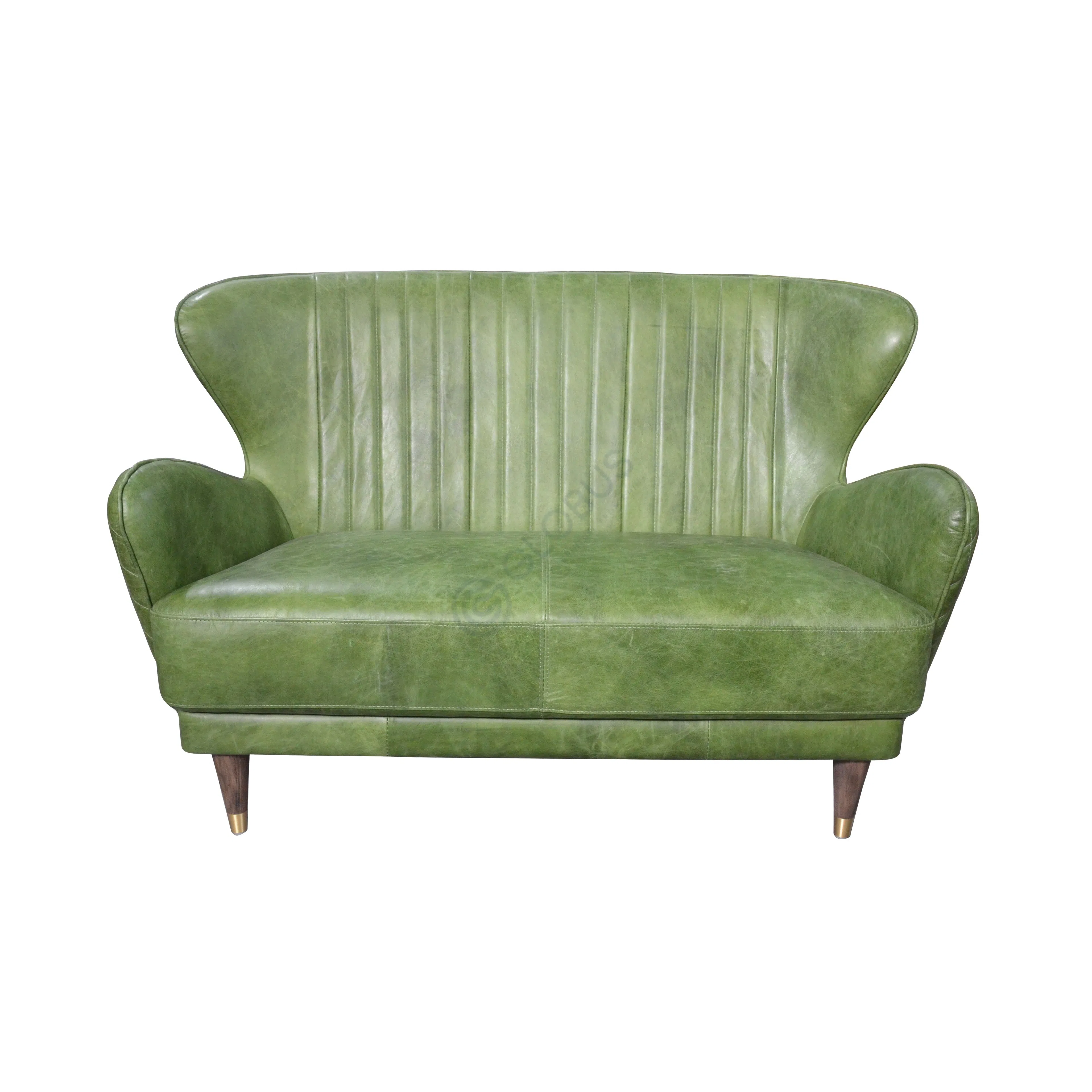 This armchair is a striking accent piece for any living room. Its distinctive wingback design and vibrant green finish capture attention immediately, blending a sense of classic form with a bold, modern palette. The vertical channel tufting along the back adds a touch of refined detail and visual interest.