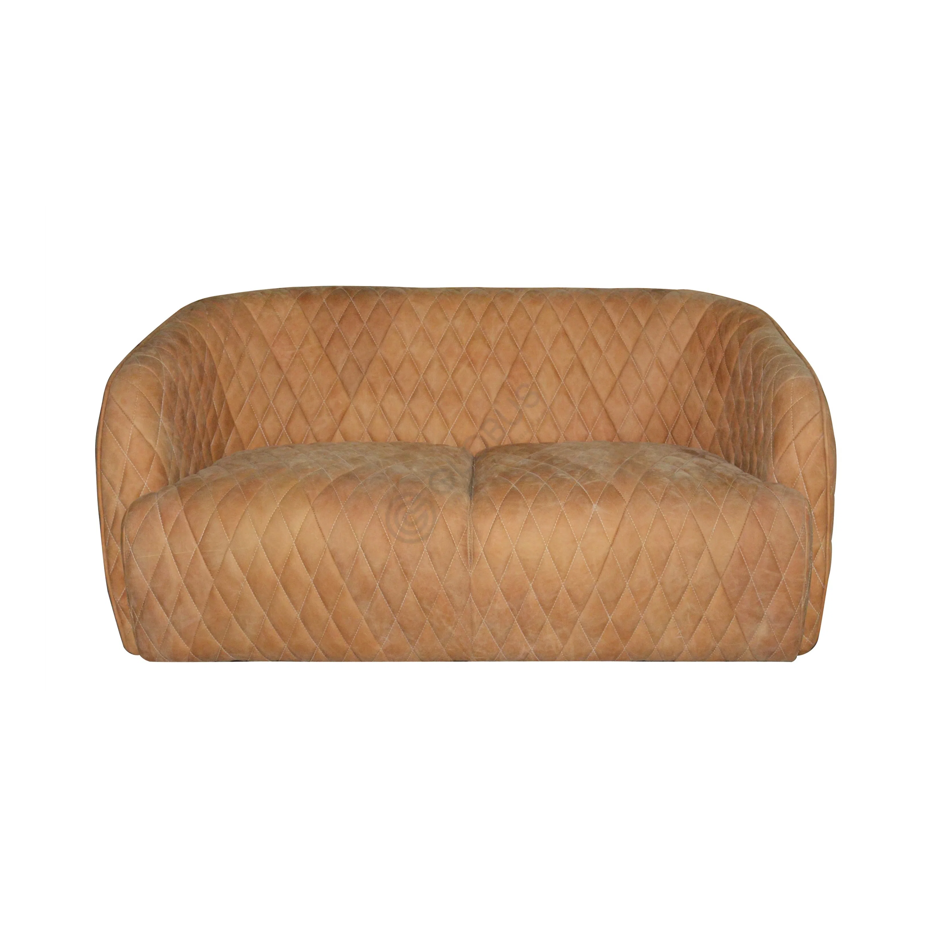 The armchair is upholstered in a warm, rich material featuring an eye-catching diamond quilted pattern across the entire surface. This texture adds visual interest and a touch of sophisticated detail. The construction relies on a durable base combining solid wood and plywood, ensuring stability and longevity.