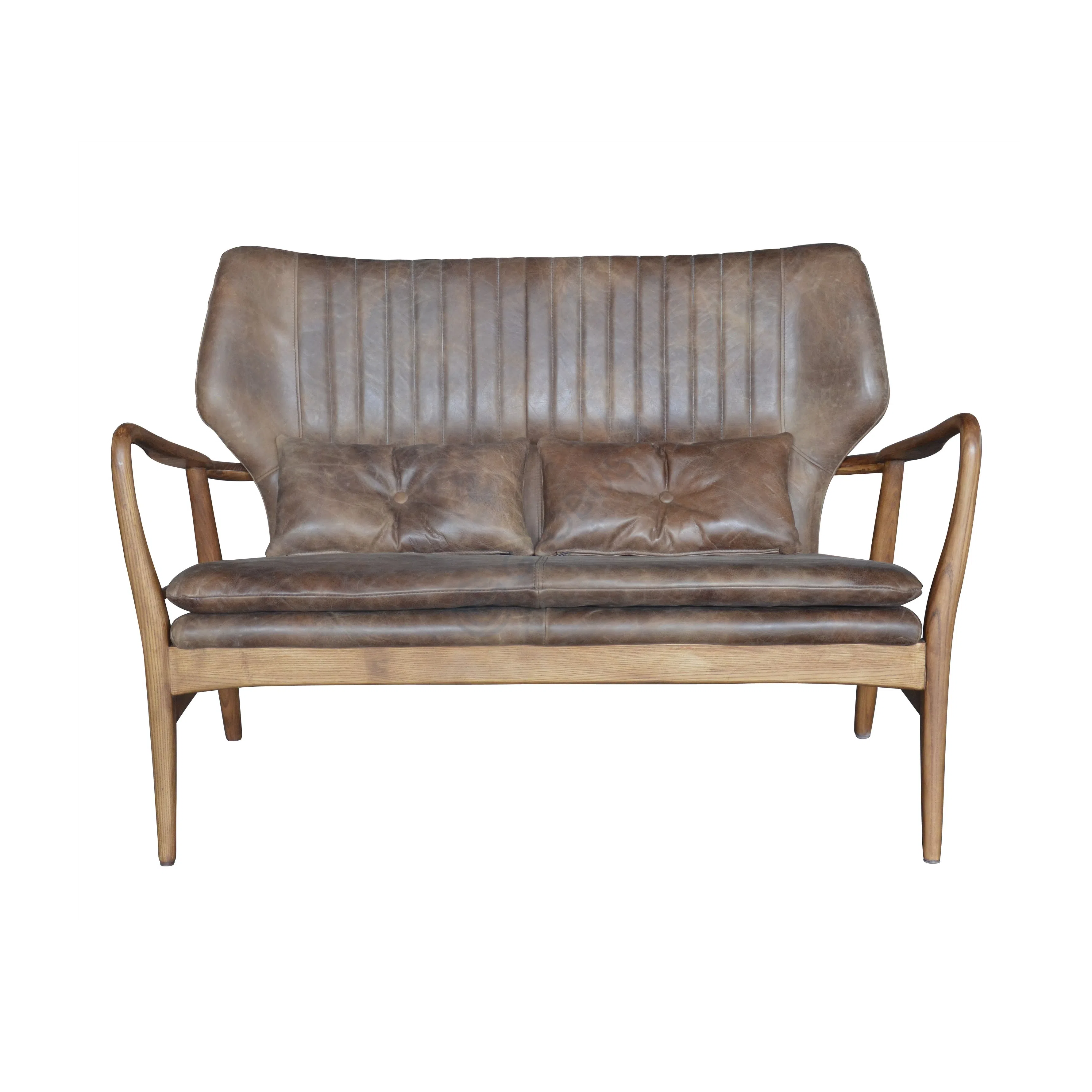 The solid wood frame exhibits clean lines and gently curved armrests, showcasing the natural beauty of the material. Its PU upholstery is finished to present a rich, textured surface with a warm, aged appearance, offering both durability and visual depth. This combination seamlessly blends the authenticity of Eco-style with the raw character of Loft design.