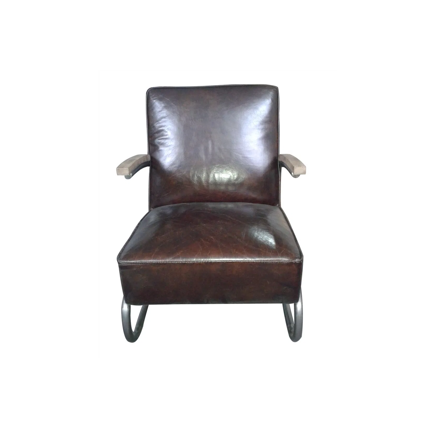 This sofa presents a distinctive character, embodying the spirit of loft style with its blend of materials and clean lines. It features a rich brown PU upholstery that provides a warm, inviting look and a comfortable seating surface. The finish of the upholstery suggests durability and a touch of industrial authenticity.