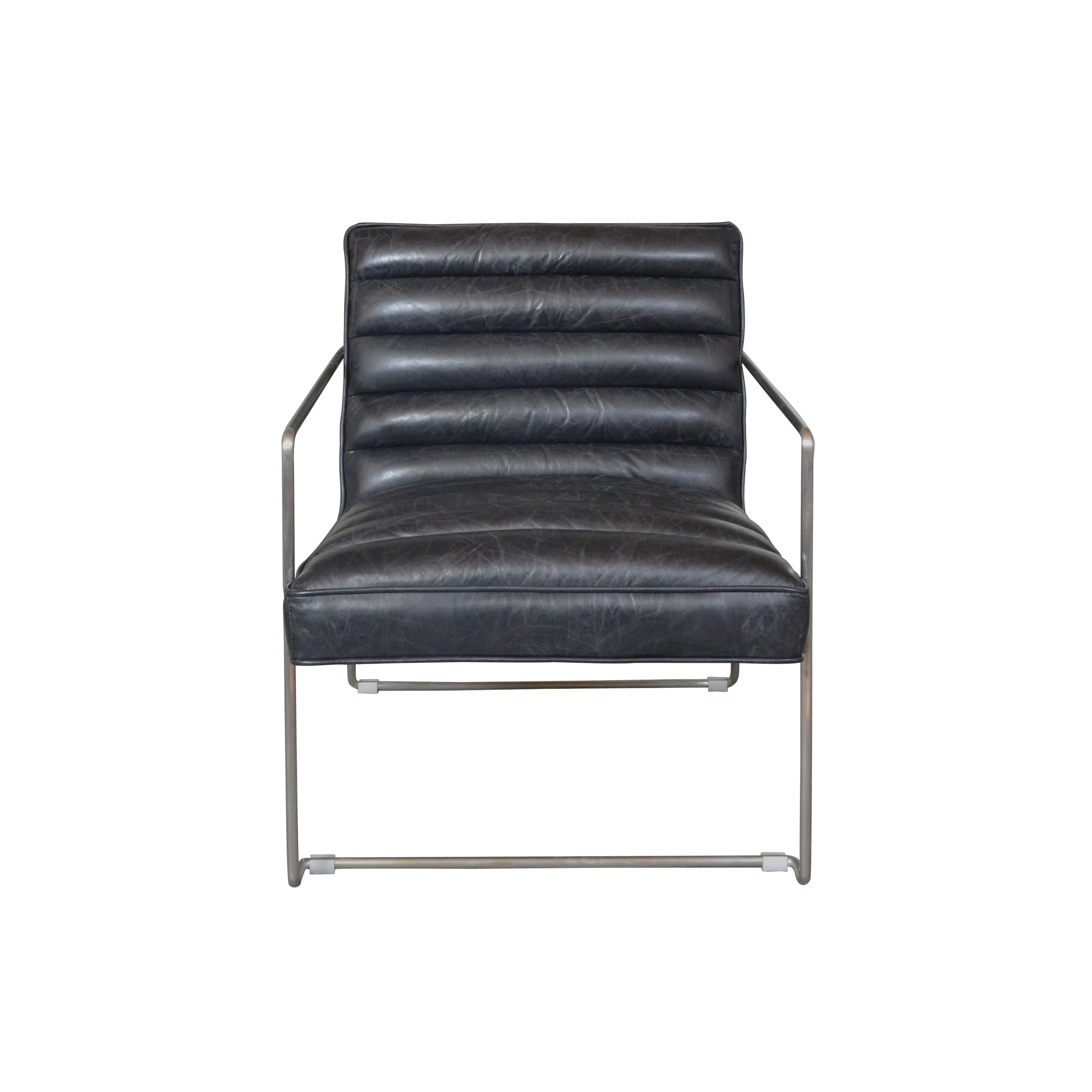 A striking piece designed for contemporary living, this sofa embodies the loft style, blending comfort with a distinct industrial edge. The seating surface features a rich, dark tone with a textured appearance, offering both visual depth and tactile interest. Horizontal channel detailing across the back and seat provides a structured yet inviting look.