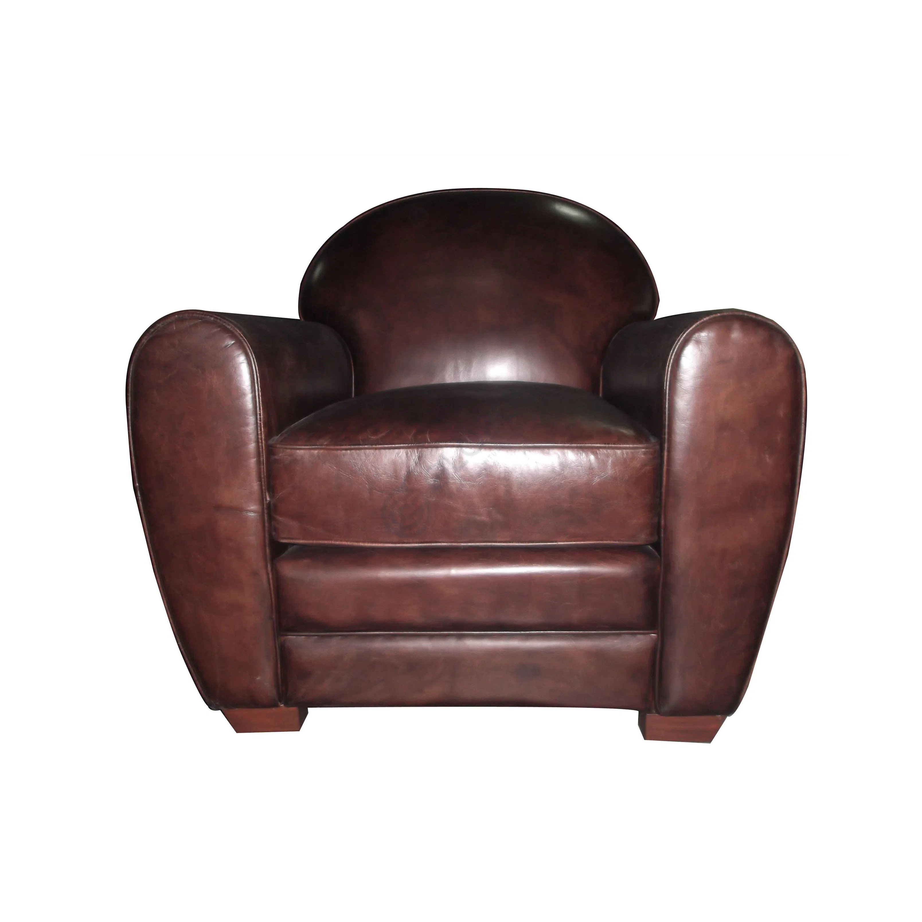 This sofa brings a sense of grounded style to a living space. Its rich, dark brown finish, resembling aged leather, adds warmth and character, aligning perfectly with a modern Loft aesthetic. The rounded profile of the back and arms creates a welcoming shape.