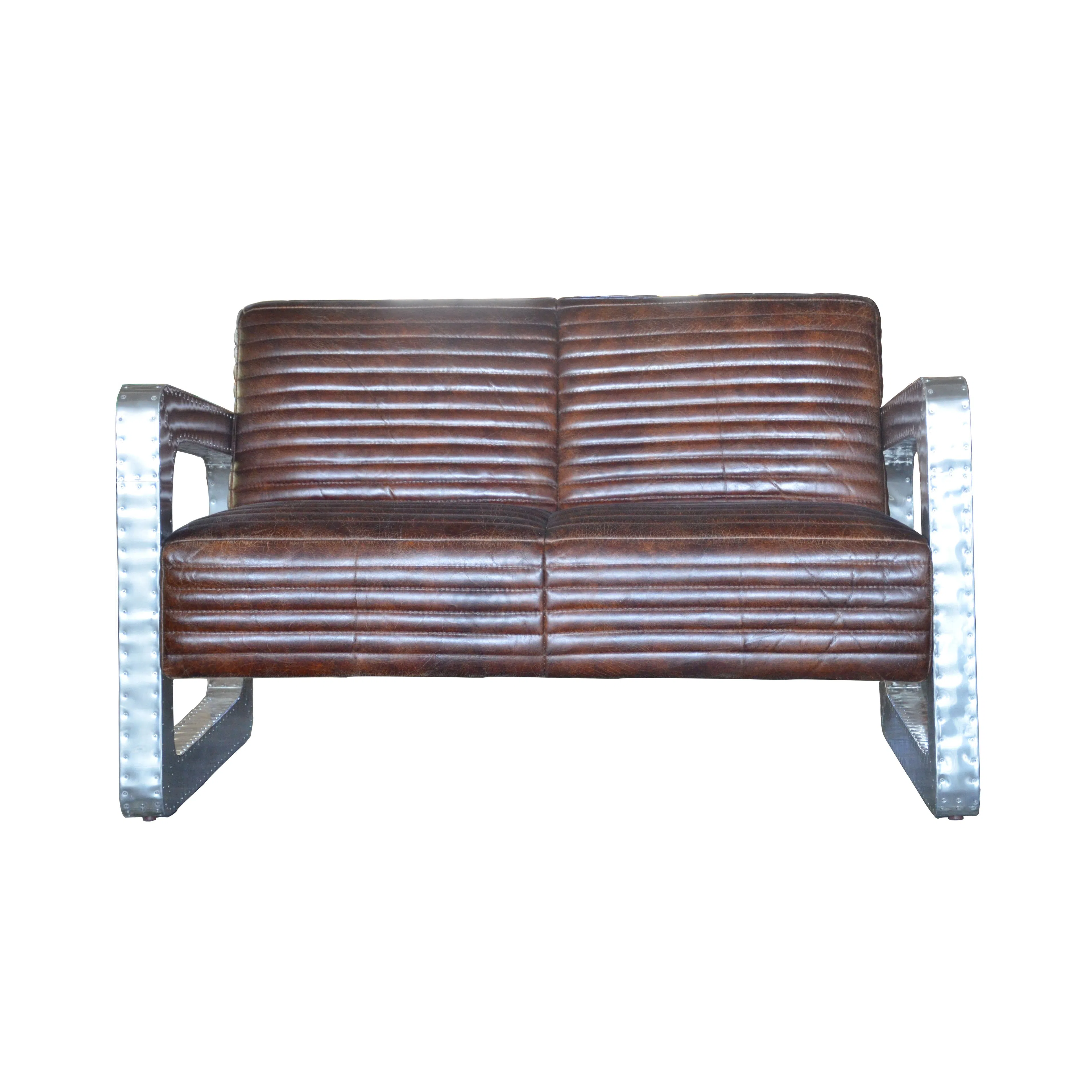 The frame features polished aluminum panels fastened with visible rivets, evoking the streamlined aesthetic of classic aviation or industrial machinery. This metallic structure provides a strong visual foundation and enhances the overall Loft style appeal.