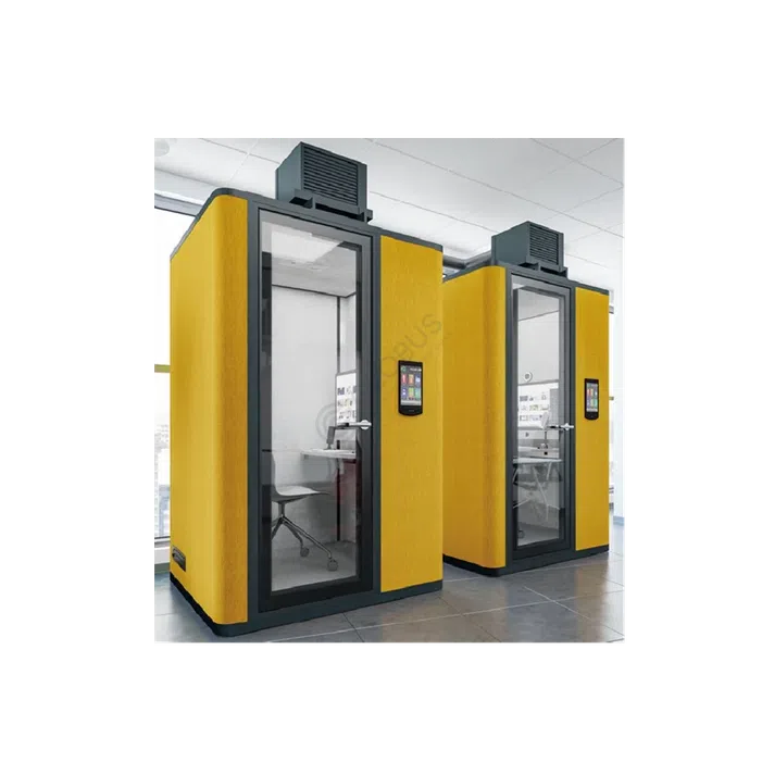 Dive into focused work or engage in private conversations with our modern soundproof booth. Designed to seamlessly integrate into any office environment, this booth is built from a combination of durable aluminum, sturdy steel, and sophisticated plywood, ensuring long-lasting quality. The exterior boasts a blend of eye-catching textile finishes that not only add a pop of color but also complement office aesthetics.